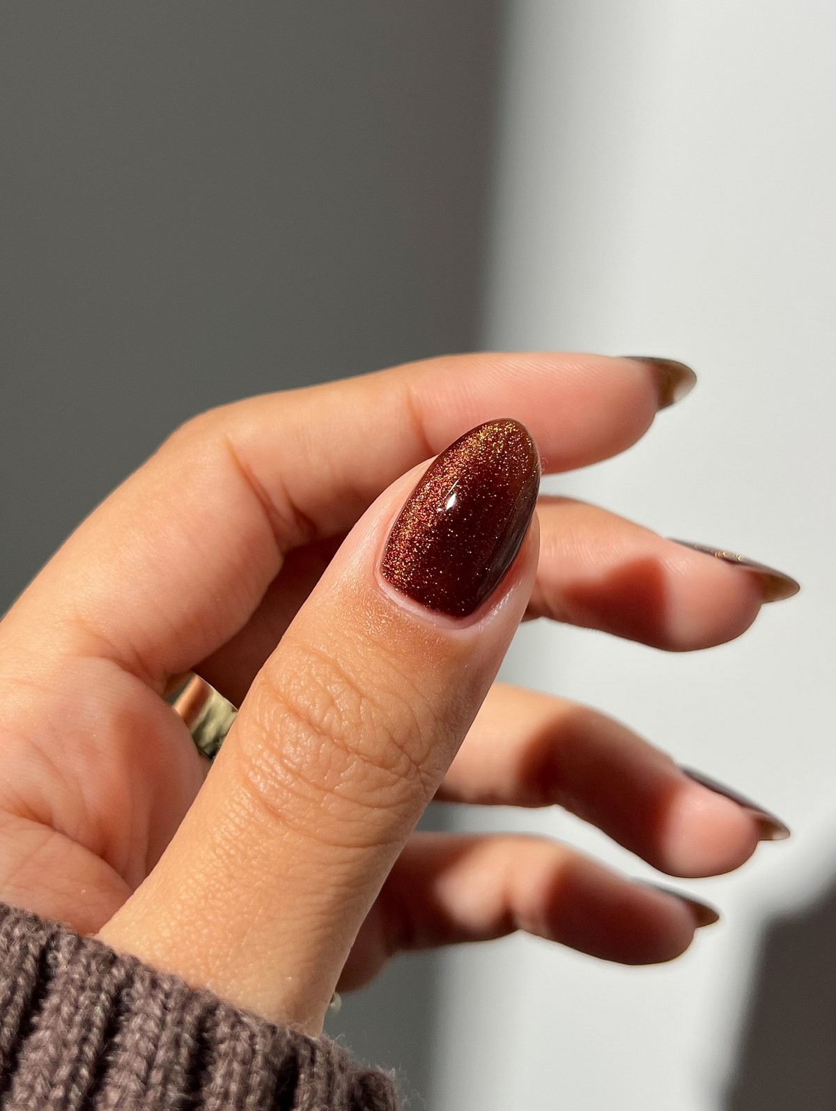 Интересно: бархатный эффект особенно красиво смотрится на миндалевидной форме ногтей — она усиливает визуальную глубину покрытия.