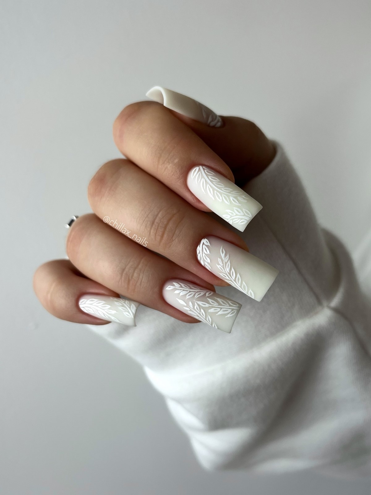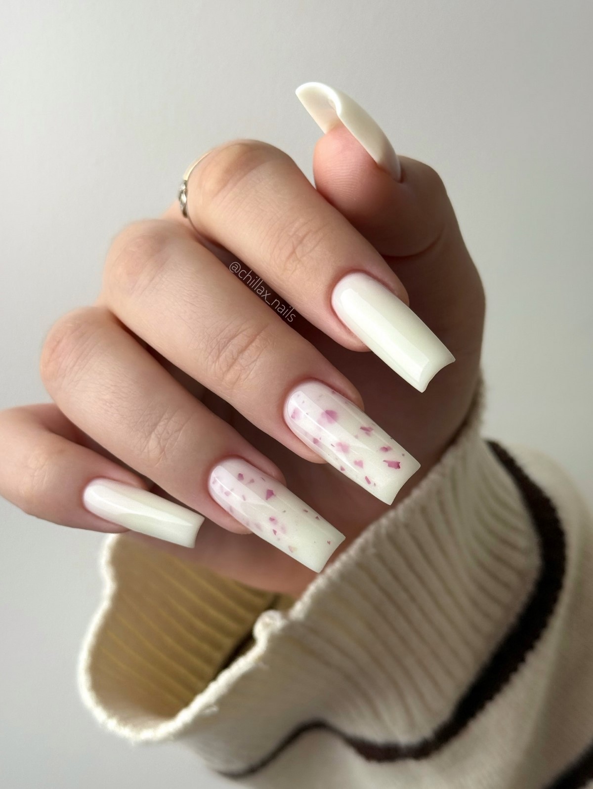 Оттенок Cloud Dancer стал одним из самых востребованных в зимнем сезоне. Это мягкий светлый серо-белый цвет, который выглядит дорого и современно. В минималистичном исполнении его дополняют тонкие линии, микро-точки или один акцентный ноготь с графическим элементом.