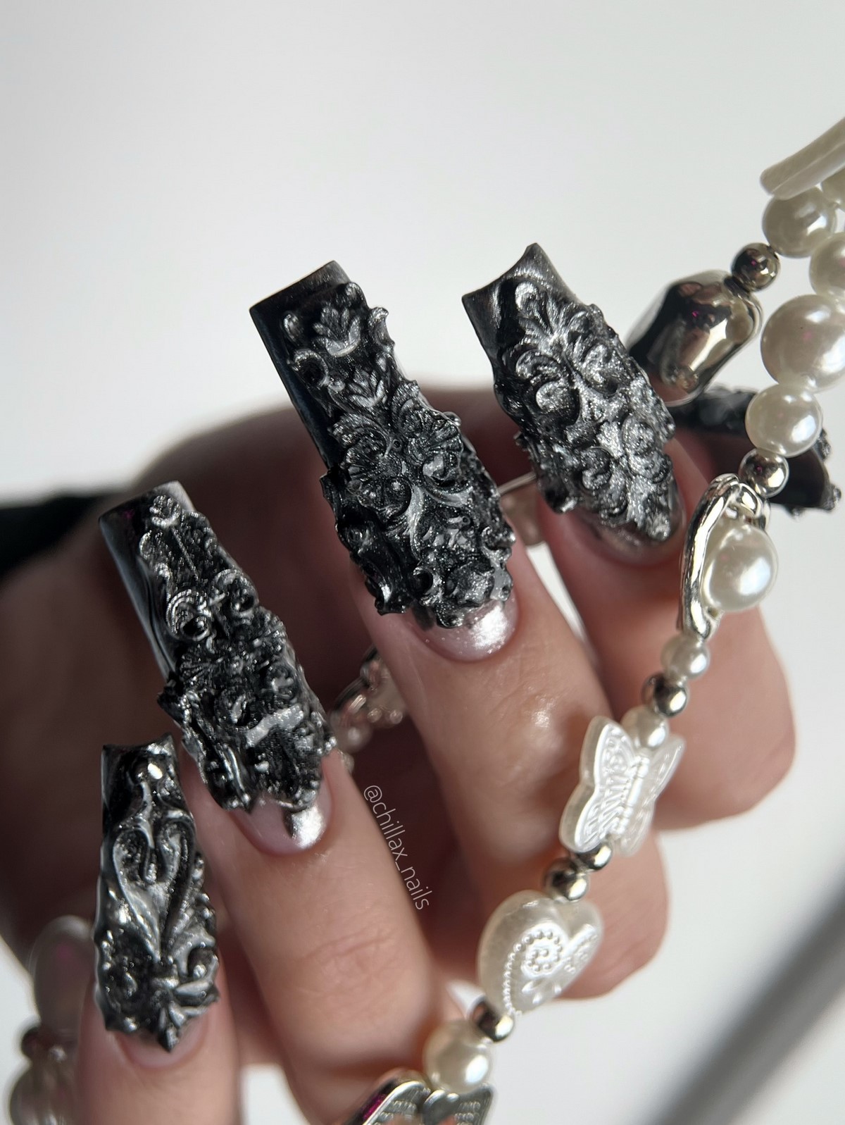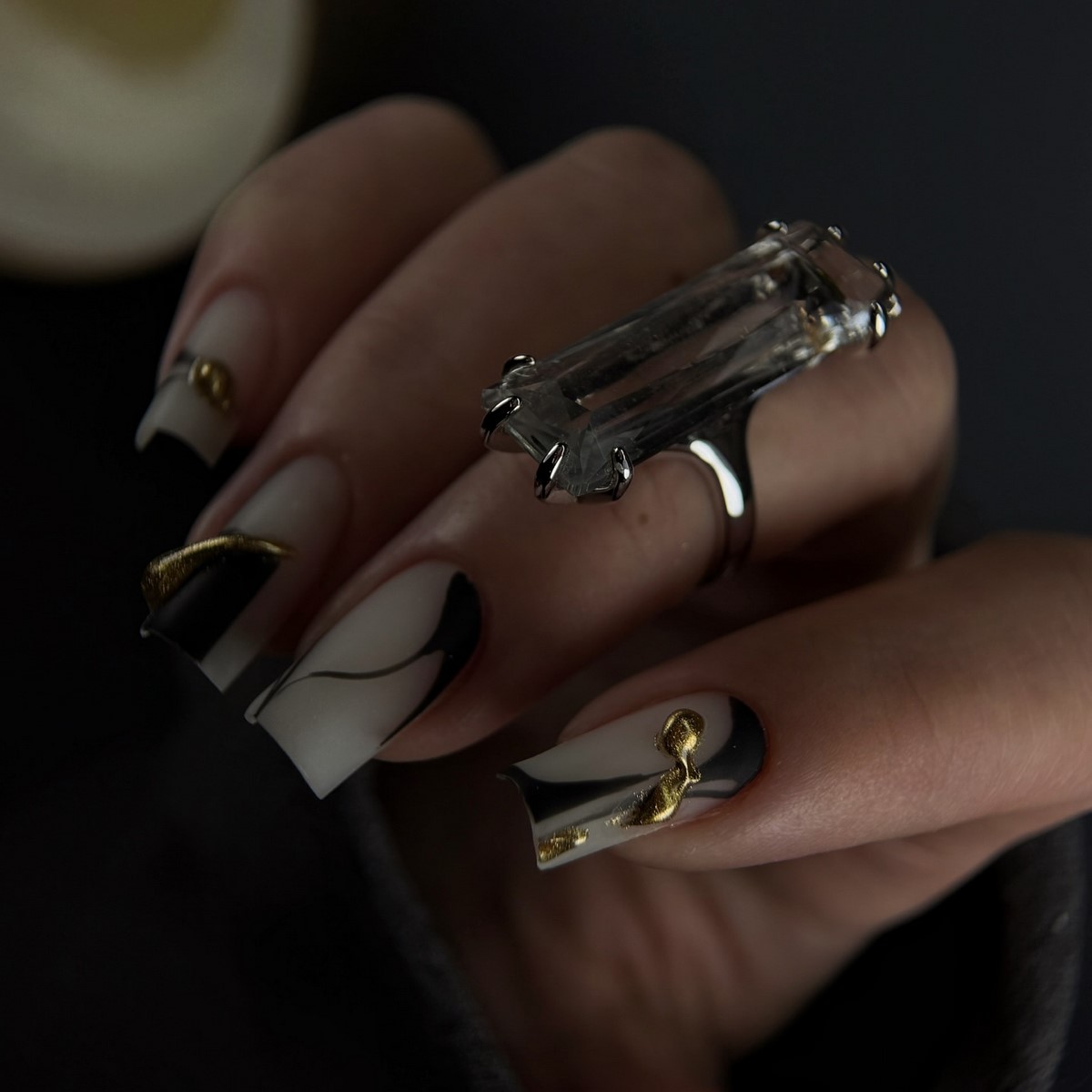 Фактурные покрытия становятся настоящим открытием сезона. Эффект бархата, камня, металла или песка добавляет глубины и визуального интереса. Текстуры особенно эффектно смотрятся в монохромных оттенках, подчеркивая форму и длину ногтей.