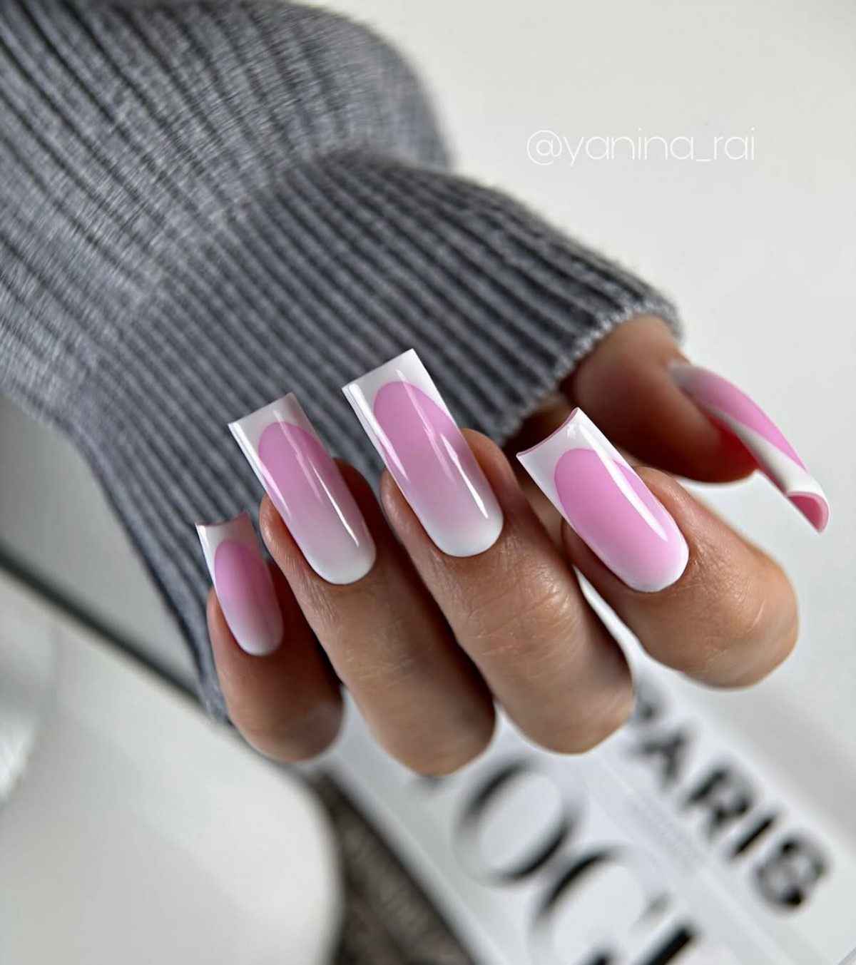 ИНТЕРЕСНО: цветной френч на длинном квадрате визуально вытягивает ногтевую пластину и делает руки более изящными.