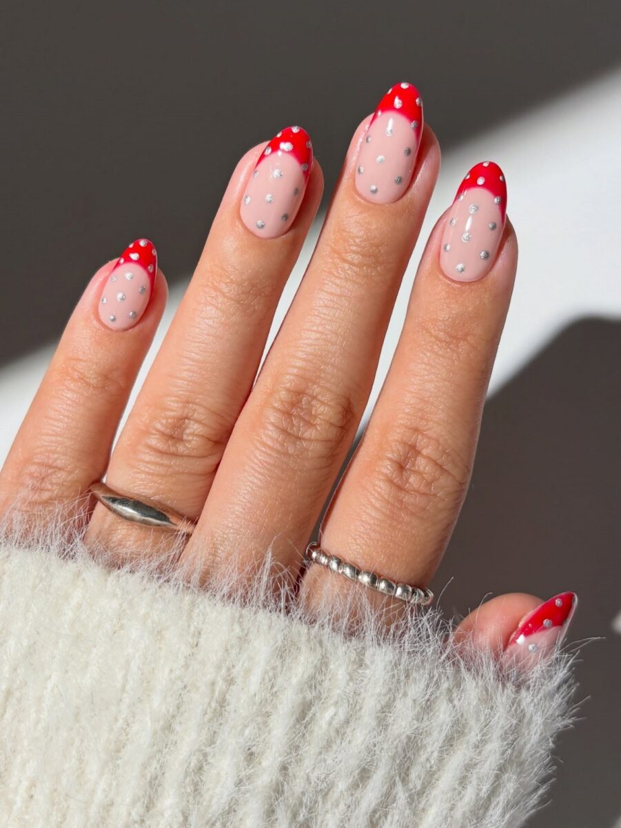 Не пропусти: комбинация Polka Dots и микроблесток сейчас входит в топ-3 самых востребованных новогодних дизайнов в салонах — этот тренд особенно любят за фотоэффектность и праздничный вид.