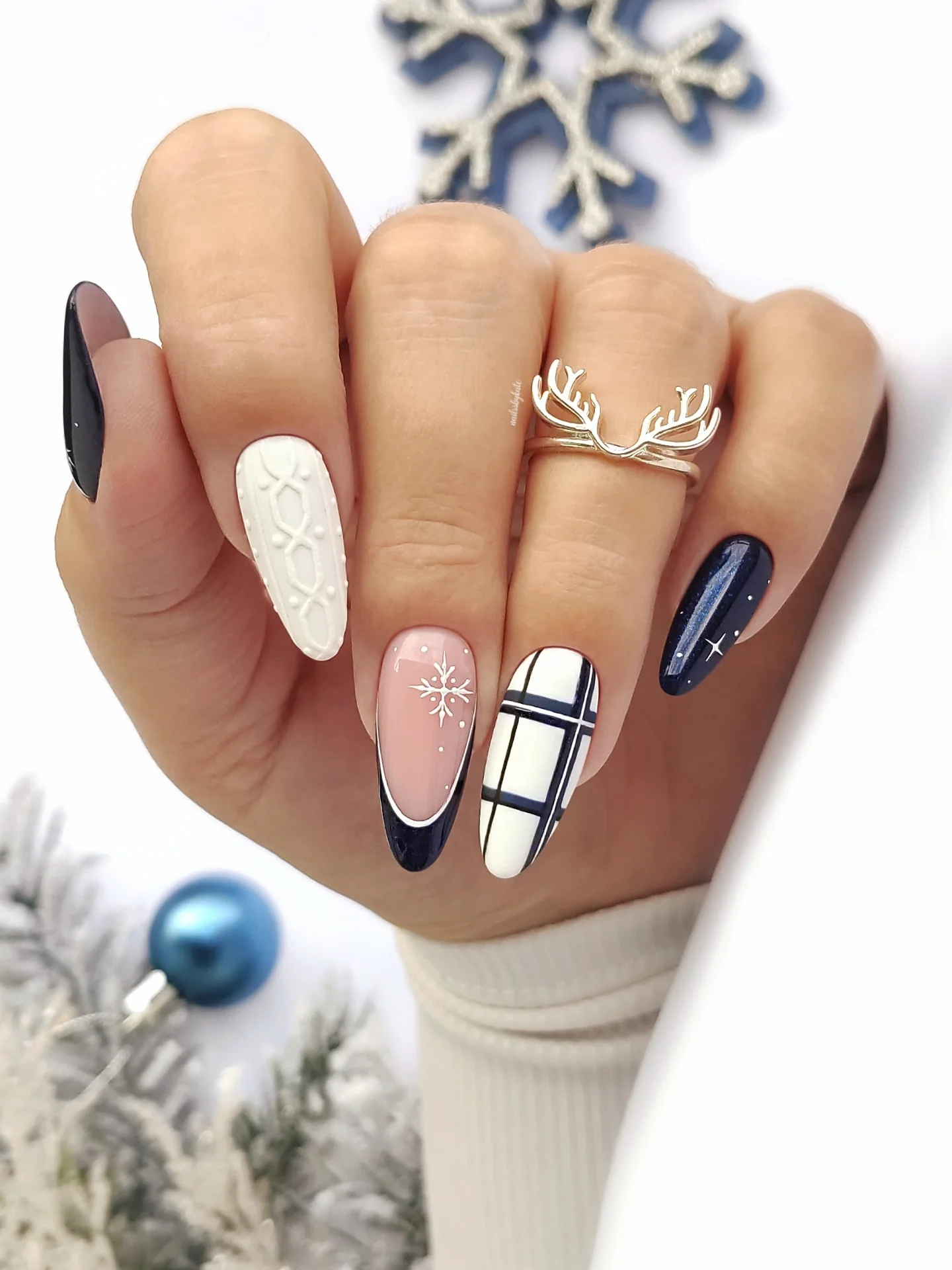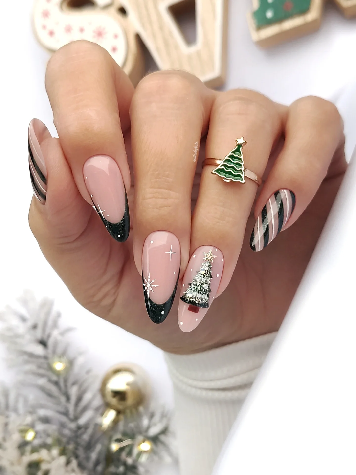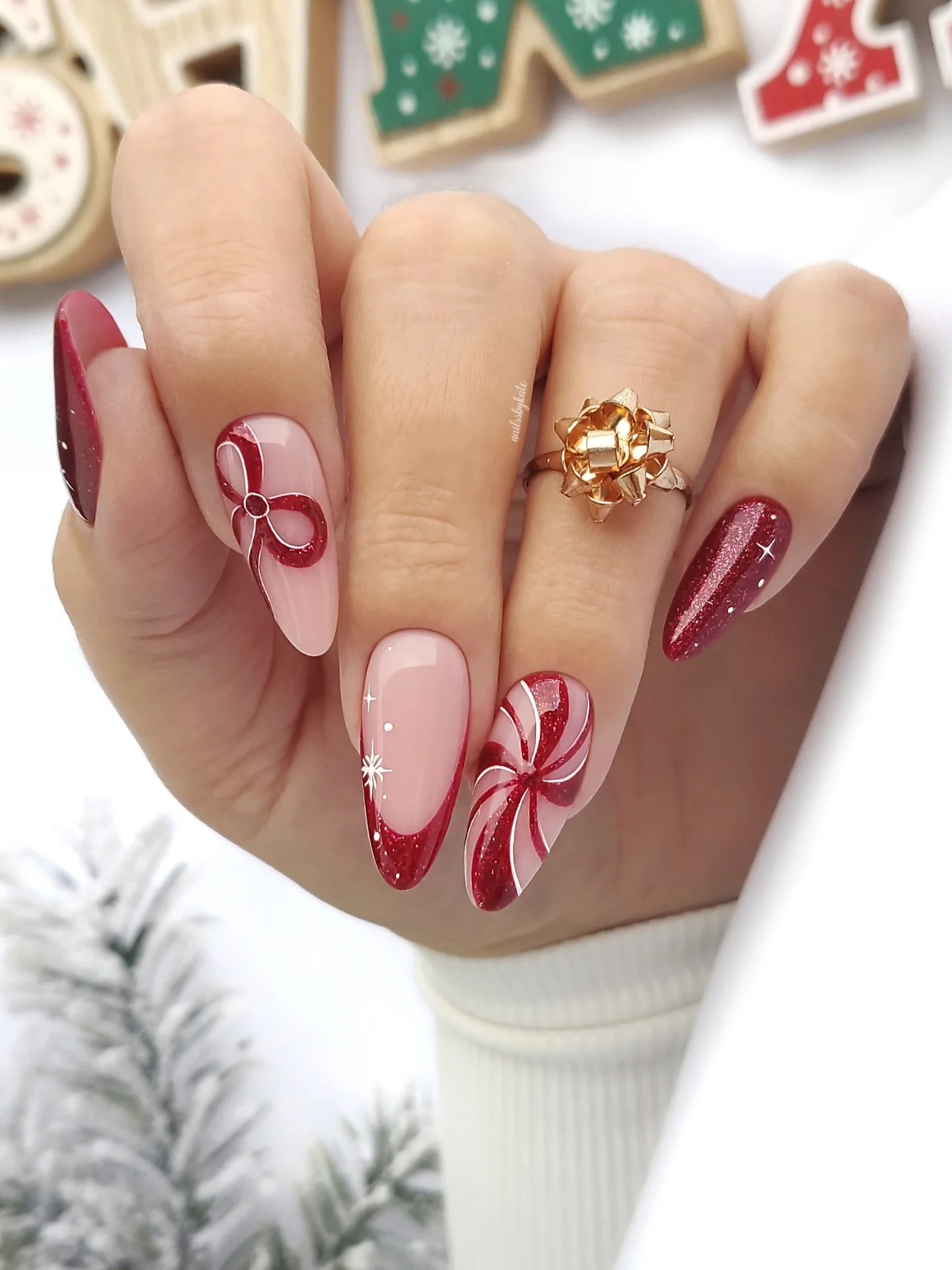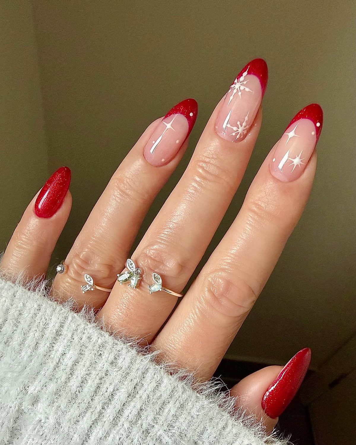 Варианты с красным френчем, стразами, золотым на черном, сияющими снежинками или Polka Dots дают возможность подобрать идеальный дизайн под любой образ — от утонченного до яркого и смелого.