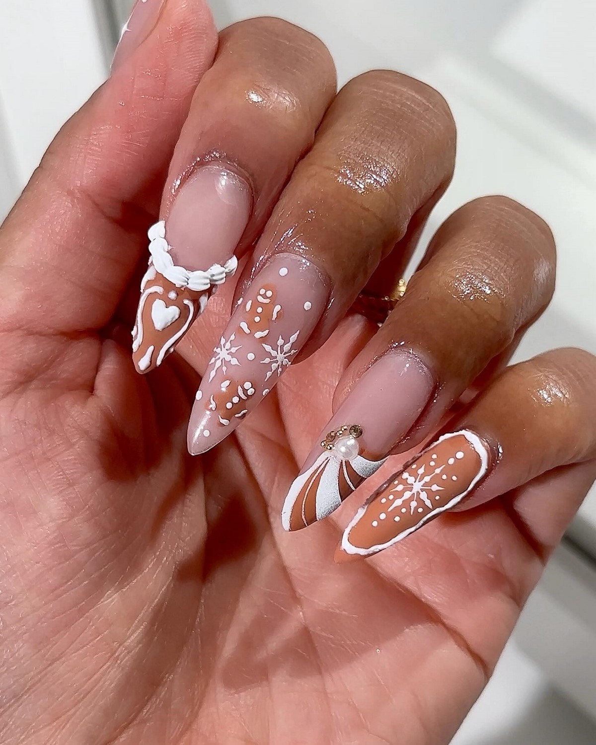 В 2026 году снежинки становятся более графичными: вместо крупного рисунка в тренде — тонкие, изящные линии, выполненные белой гель-краской или серебристой паутинкой. Такой маникюр подчеркивает эстетику зимы, оставаясь при этом легким и современным.