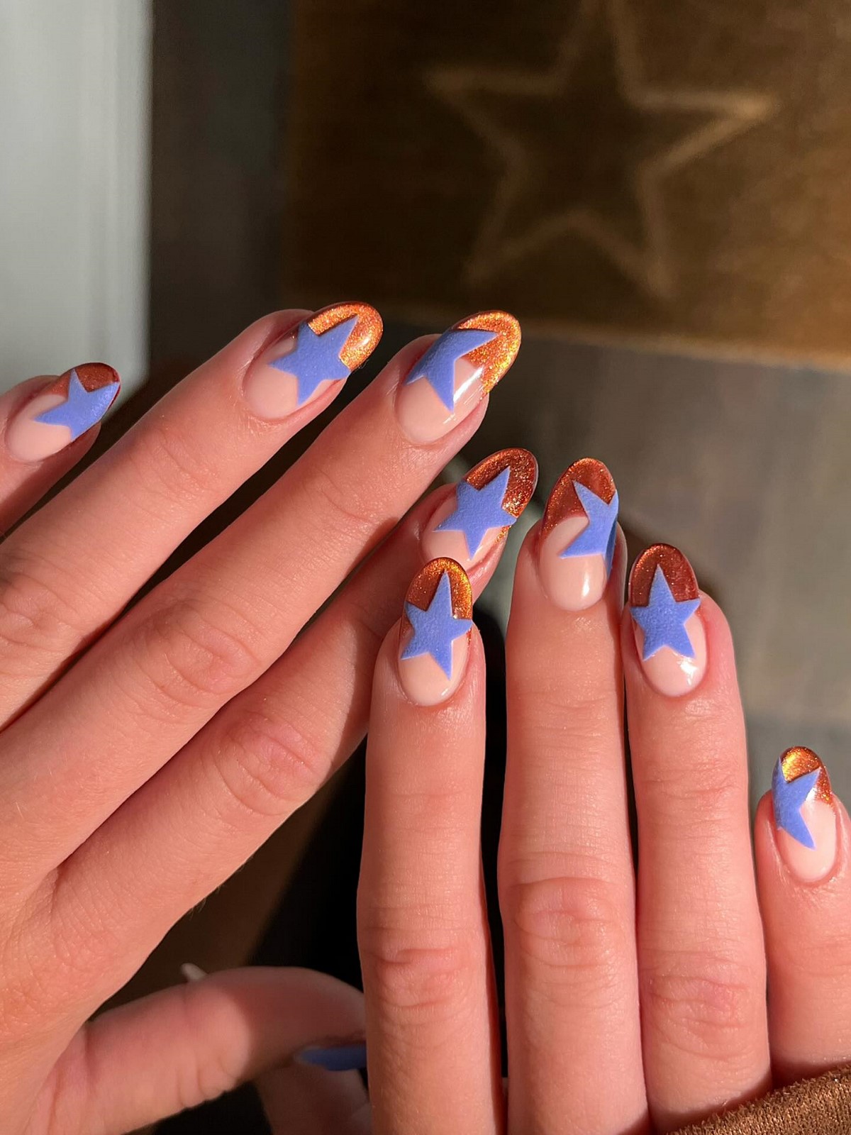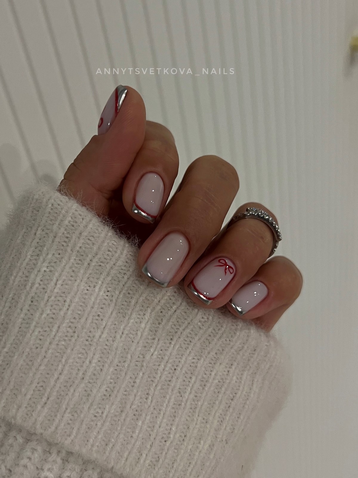 В январе металлический френч часто выполняют в ультратонком формате или с легким зеркальным эффектом, без перегруженности. Он идеально подходит для вечерних образов, праздников и даже офисного дресс-кода, если выбрать спокойный оттенок металла.