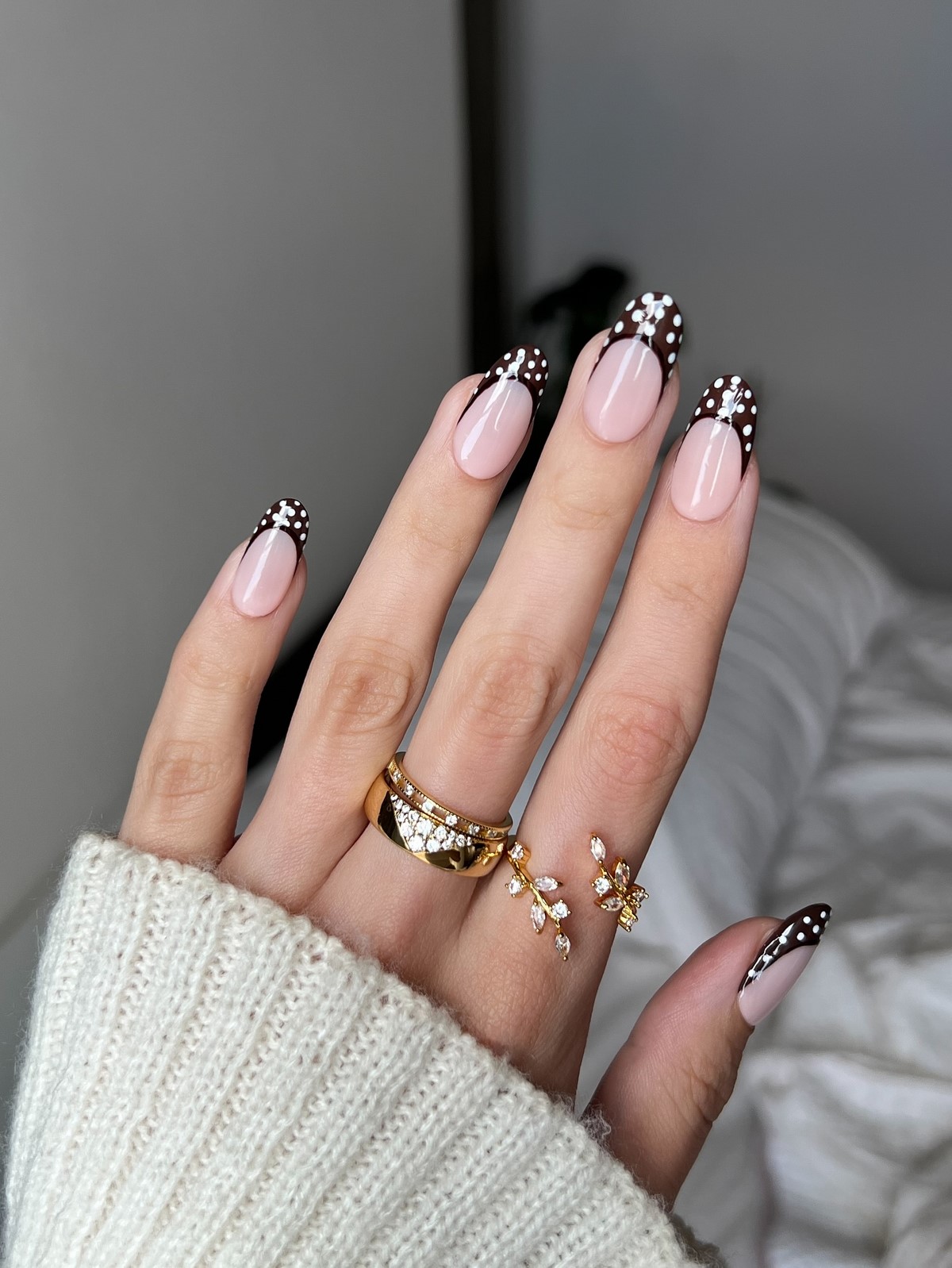 Горошек делает френч более игривым, но при правильной цветовой палитре сохраняет элегантность. Такой дизайн отлично подходит для тех, кто хочет добавить маникюру индивидуальность, не выходя за рамки модных тенденций.
