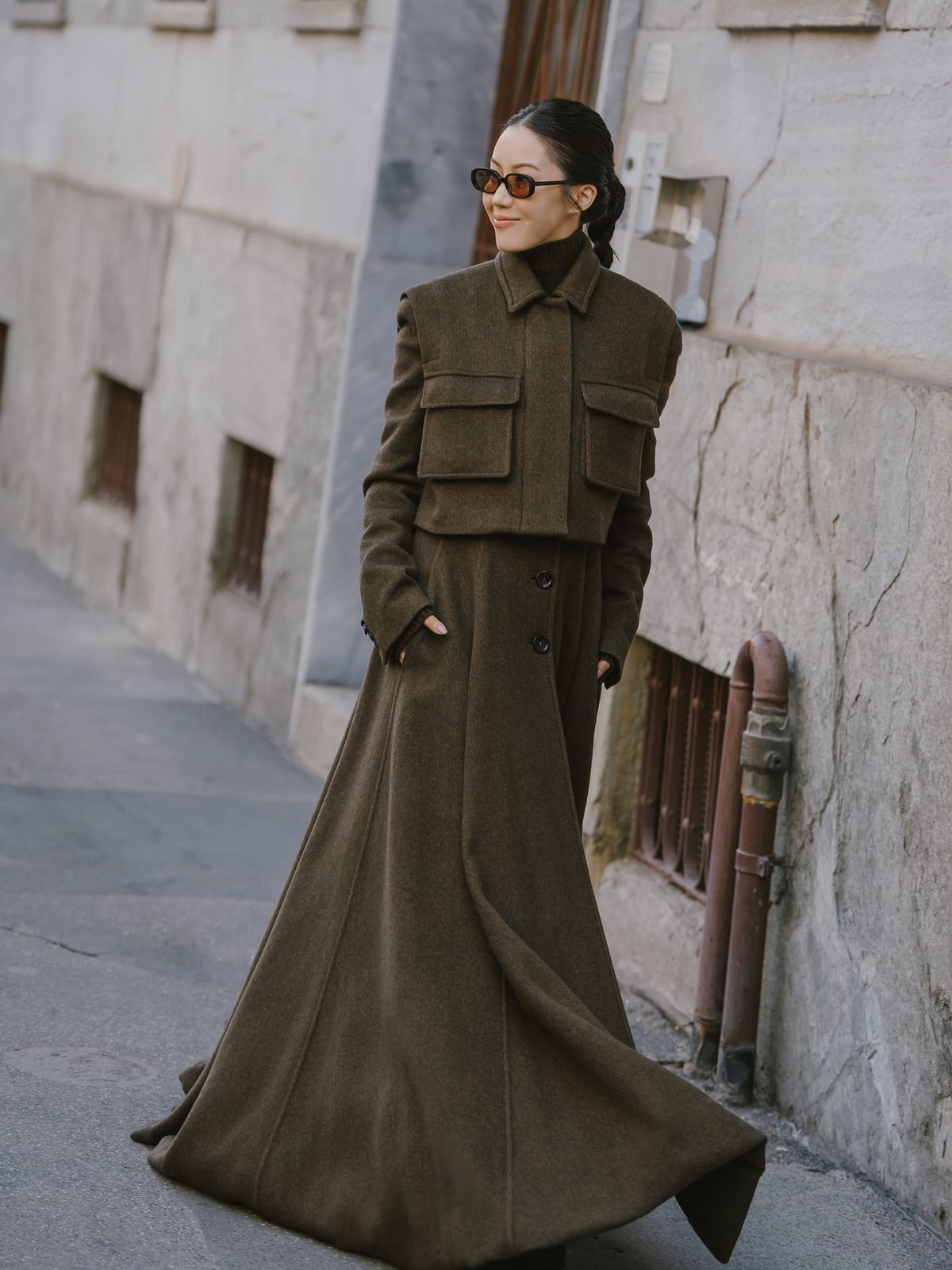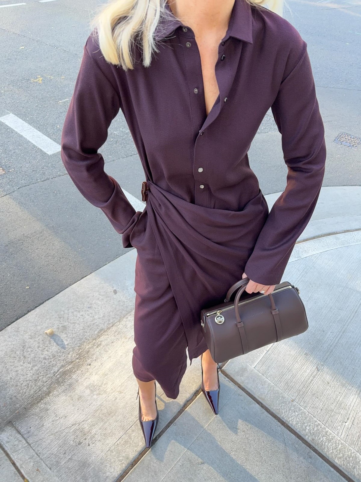 Этот оттенок подчеркивает фактуру ткани и делает даже минималистичный образ глубоким и структурным.