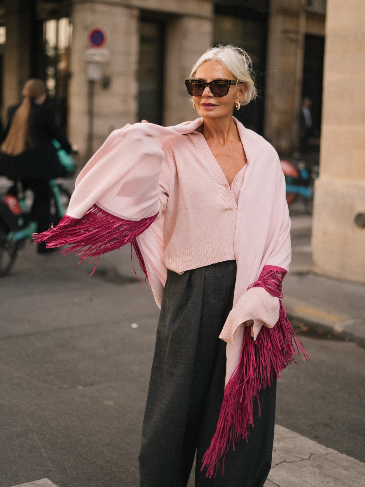 Розовый снова с нами, но трендовая версия — не Barbiecore и не неон, а мягкий утонченный оттенок с холодным подтоном. Его называют frost pink — «морозный розовый». Он создает эффект легкости и женственности даже в многослойных зимних образах.