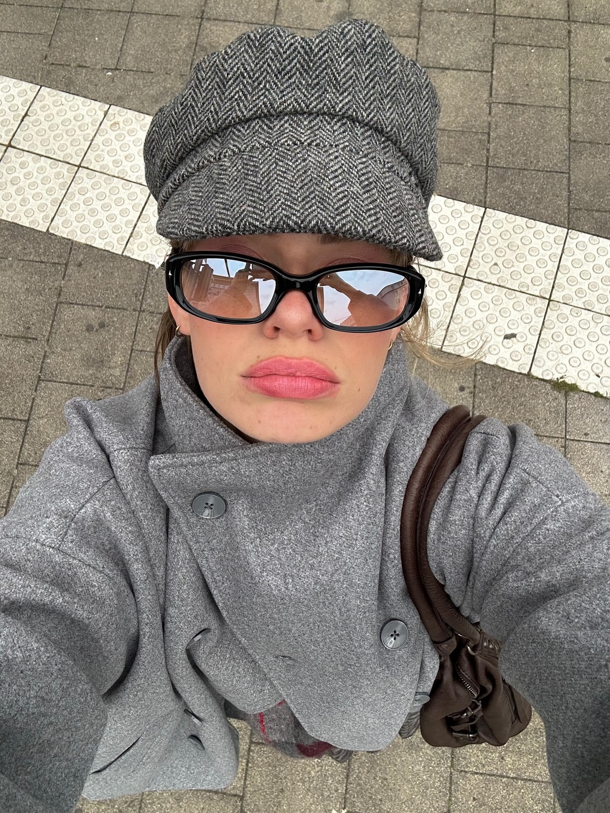 - Круглое лицо: выбирайте модели с объемом сверху — клош, кепи или берет, надетый под углом, помогут визуально вытянуть черты.