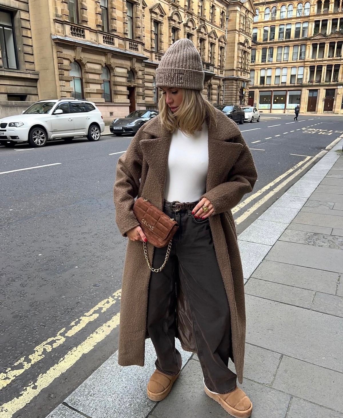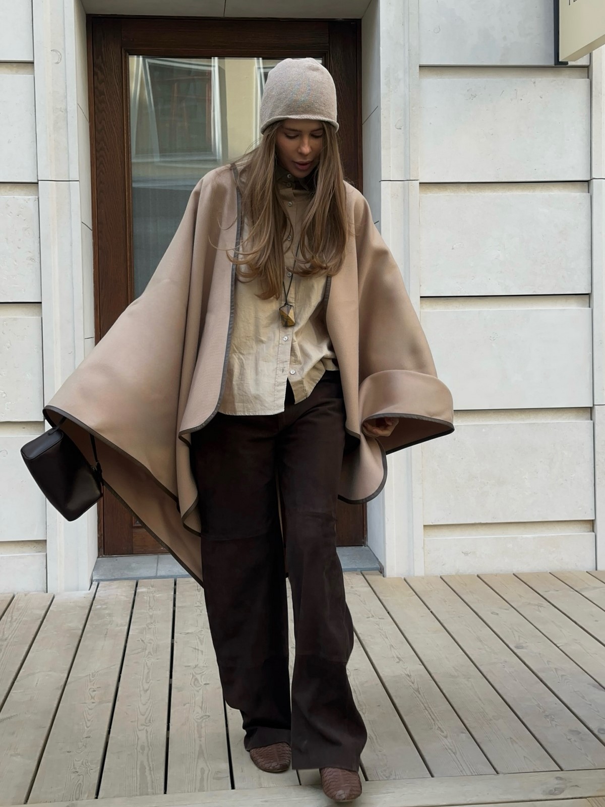 Шляпа-клош, родом из 1920-х, снова в центре внимания. Мягкий купол и узкие поля придают образу женственность и загадочность. Современные модели выполнены из фетра, твида или кожи и украшены лентами или металлическими акцентами. Клош идеально сочетается с пальто в стиле old money, удлиненными плащами и строгими костюмами, добавляя им мягкости и утонченности.