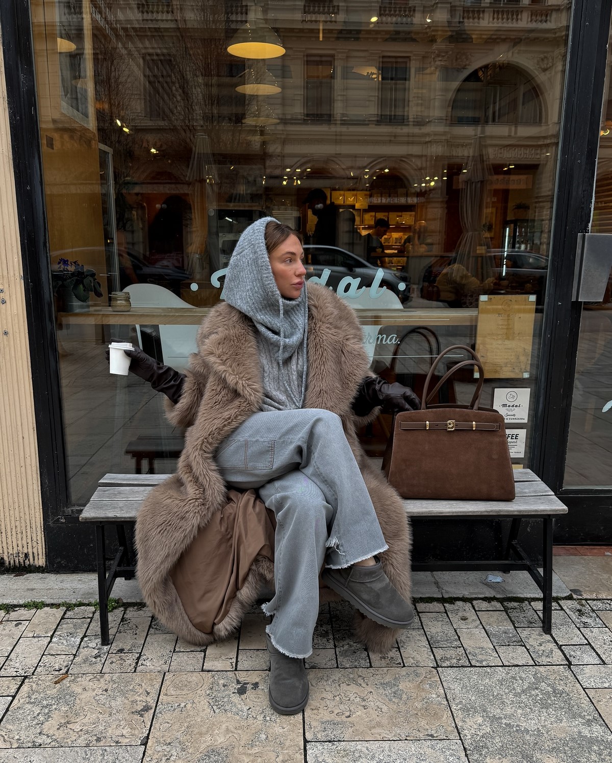 - Объем и фактура: мех, трикотаж крупной вязки и бархат создают уют и выразительность.