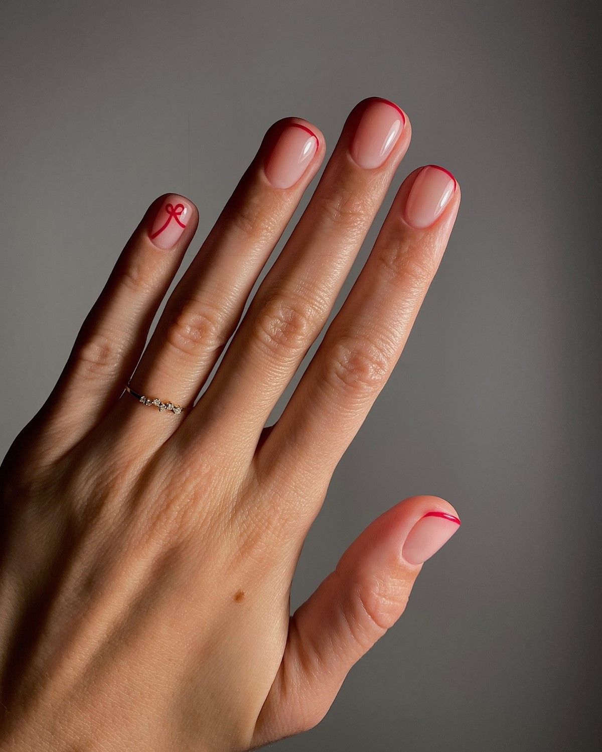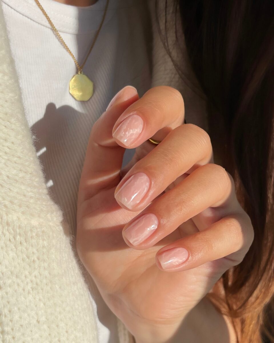 Наиболее актуальны объемные элементы в нейтральных оттенках или в цвете базы. Такой прием делает маникюр визуально сложным и дорогим, не нарушая гармонию короткой длины.