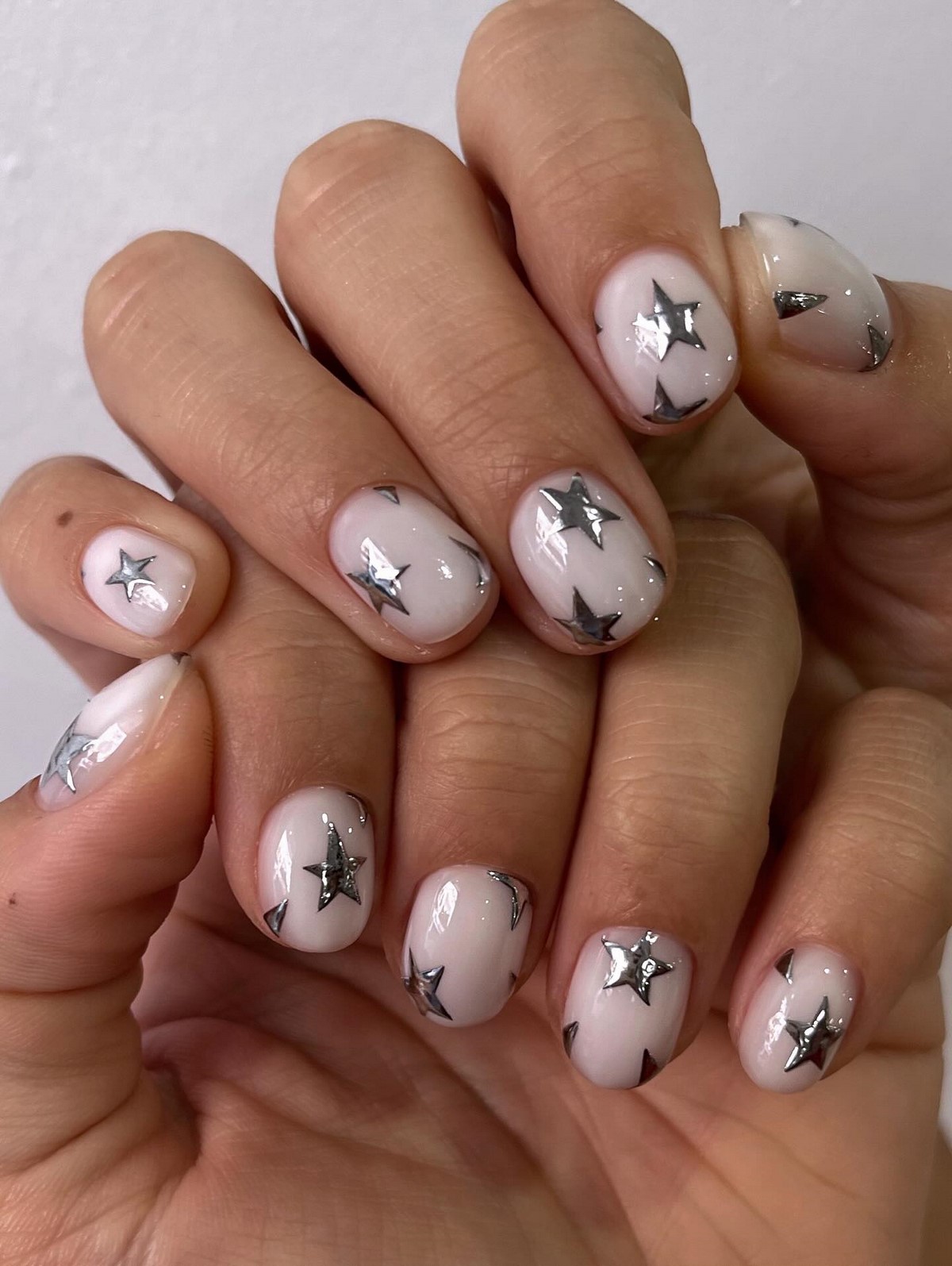 ИНТЕРЕСНО | звездочки на коротких ногтях визуально делают маникюр более воздушным, особенно если использовать прозрачные или молочные оттенки базы.