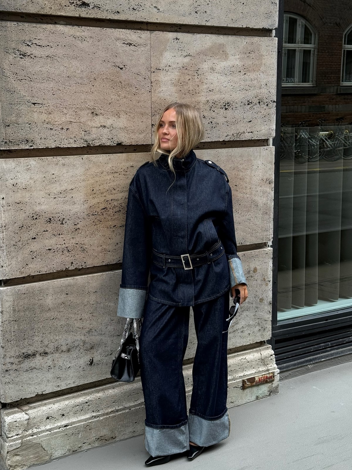 Грубоватые, но стильные джинсы с широкими манжетами — хит сезона. Они создают расслабленный силуэт и идеально подходят для сочетаний с рабочей курткой, объемным свитером или классическими ботинками.