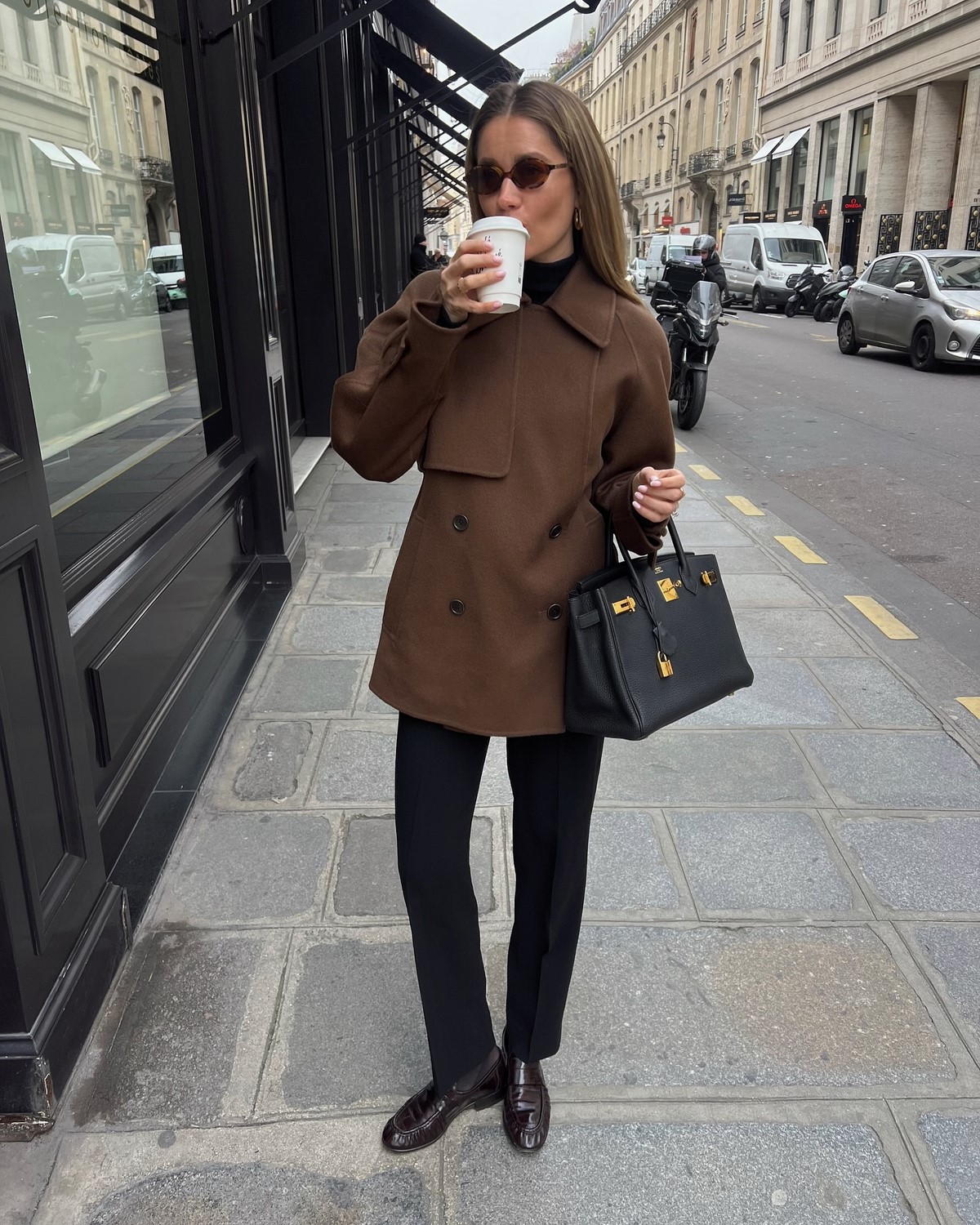 - Силуэты. В моде как оверсайз (рабочие куртки, пальто-пиджаки), так и четко очерченная талия (брючные костюмы). Гармония объема и структуры — главный ориентир сезона.