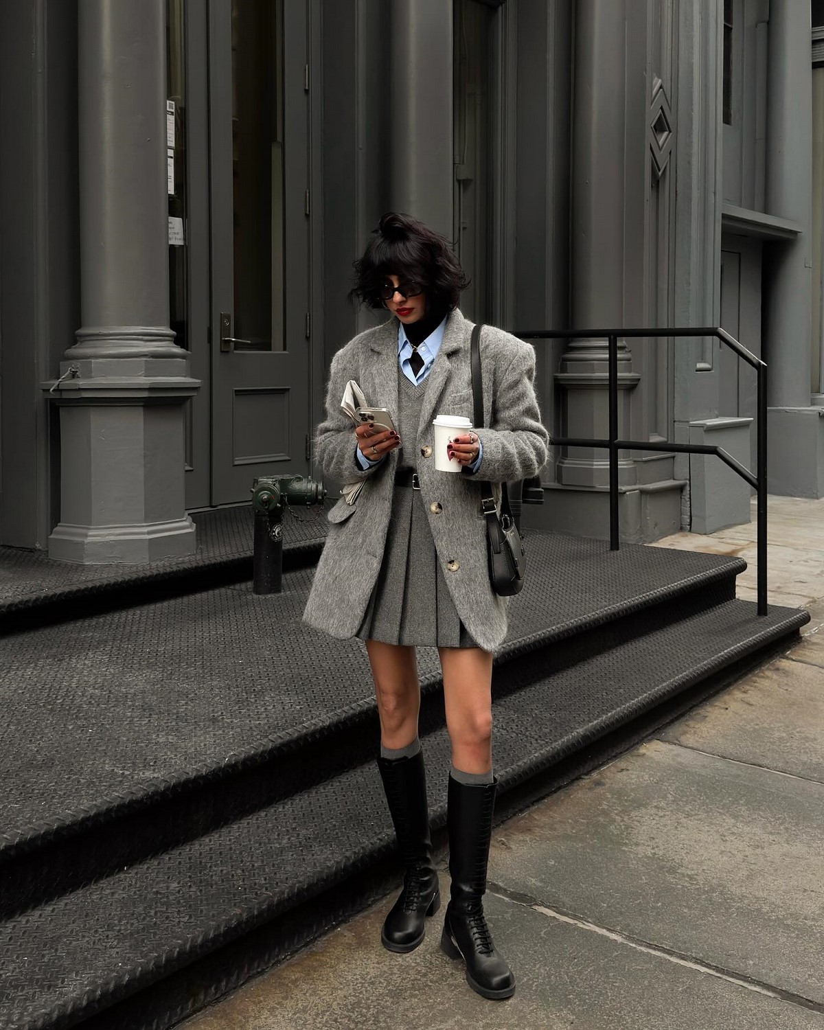 В холодный сезон мини-шорты носят с колготками, гольфами и сапогами. Эта вещь добавляет игривости и молодости в образ, особенно в сочетании с оверсайз-свитером или строгим жакетом.
