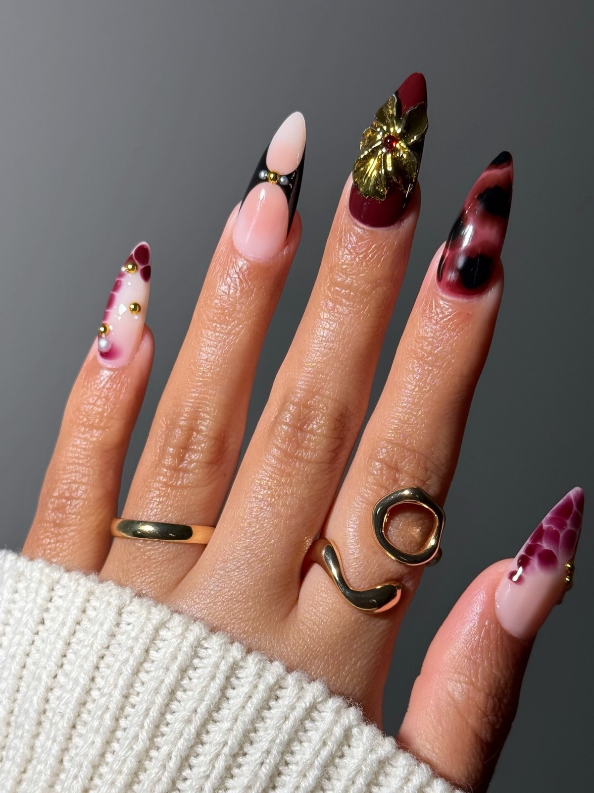 Маникюр октября 2025 — это смелое сочетание спокойных базовых тонов с яркими акцентами и декоративными элементами. Стразы, змеиный принт, аура-дизайн и насыщенные осенние оттенки делают его выразительным и многогранным. Такой маникюр помогает подчеркнуть индивидуальность и создать гармоничный образ, соответствующий настроению осени.