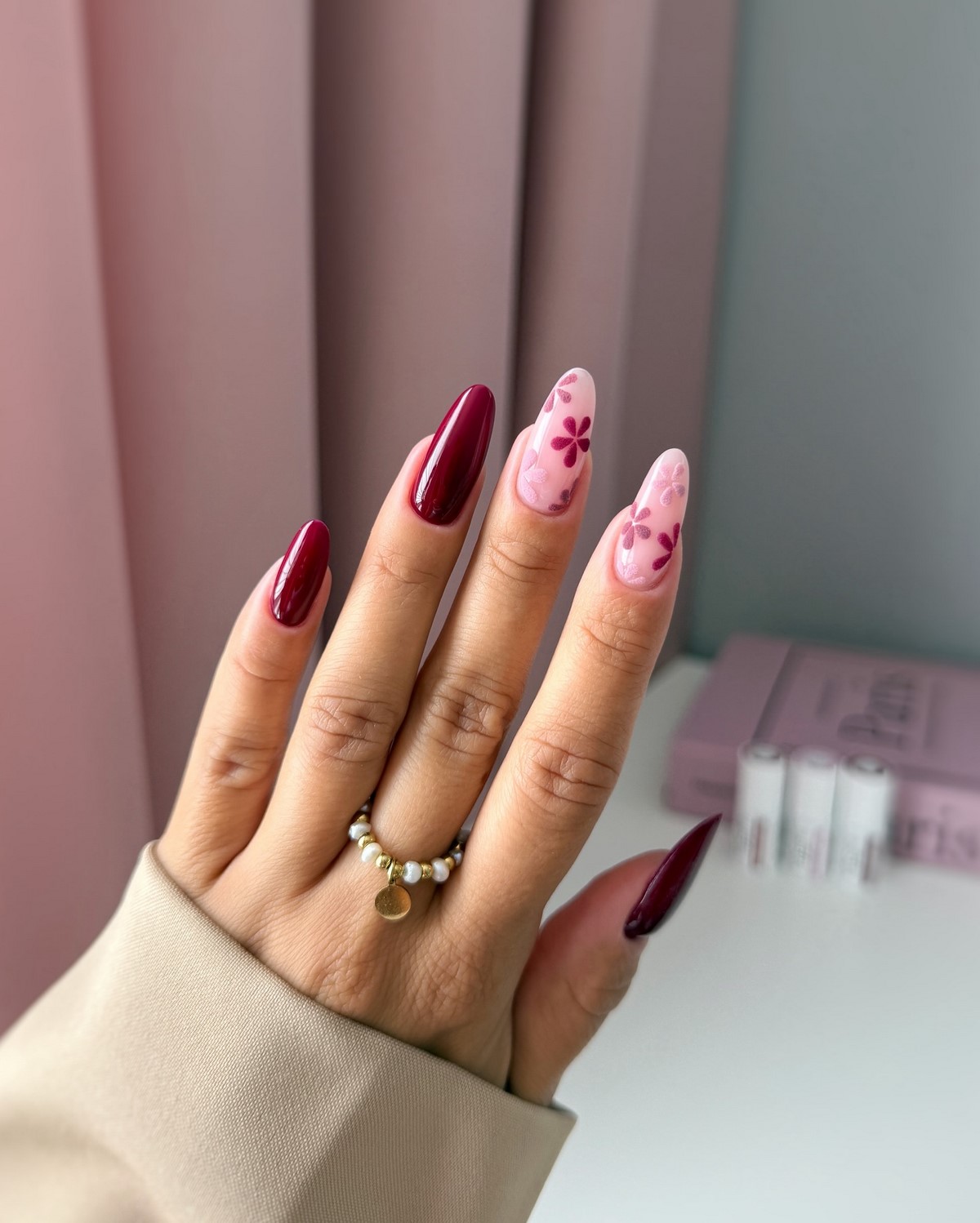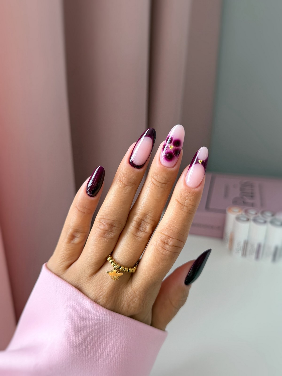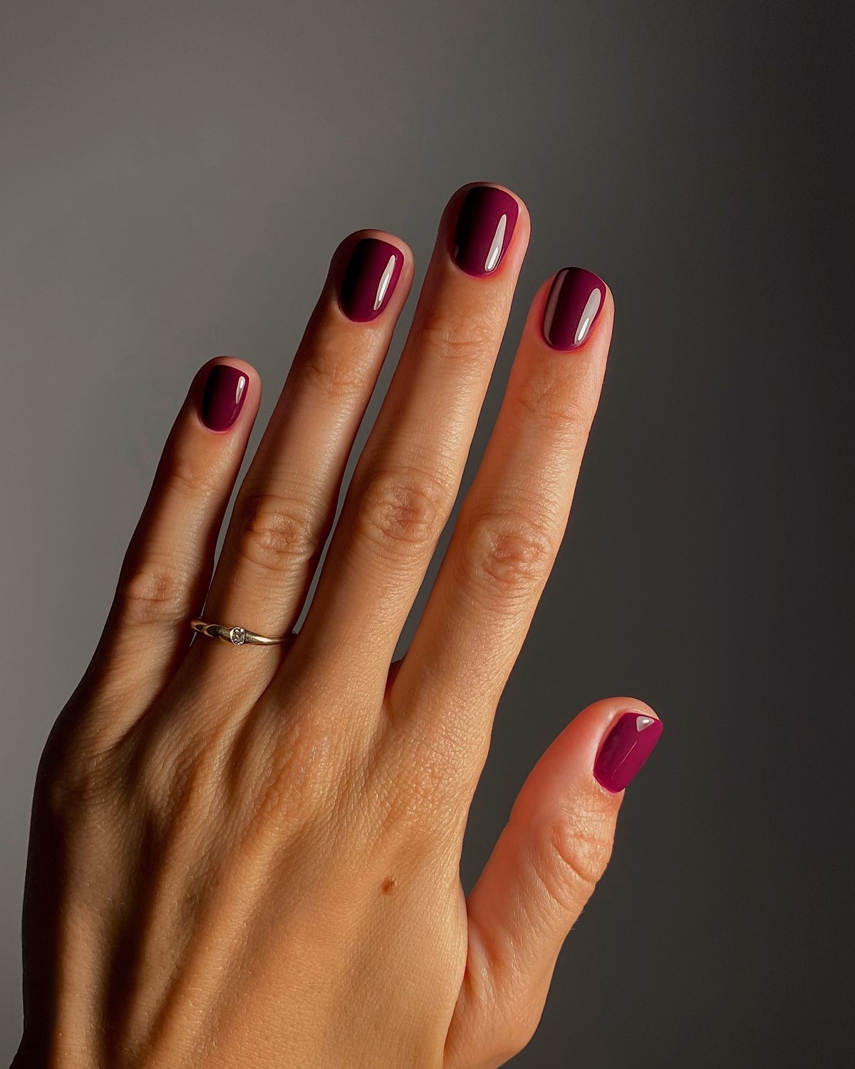 Малина, смородина, ежевика — все эти оттенки находят отражение в модном маникюре октября. Ягодные тона смотрятся ярко и женственно, а при матовом покрытии обретают особую глубину. Отличный вариант для тех, кто любит выделяться.