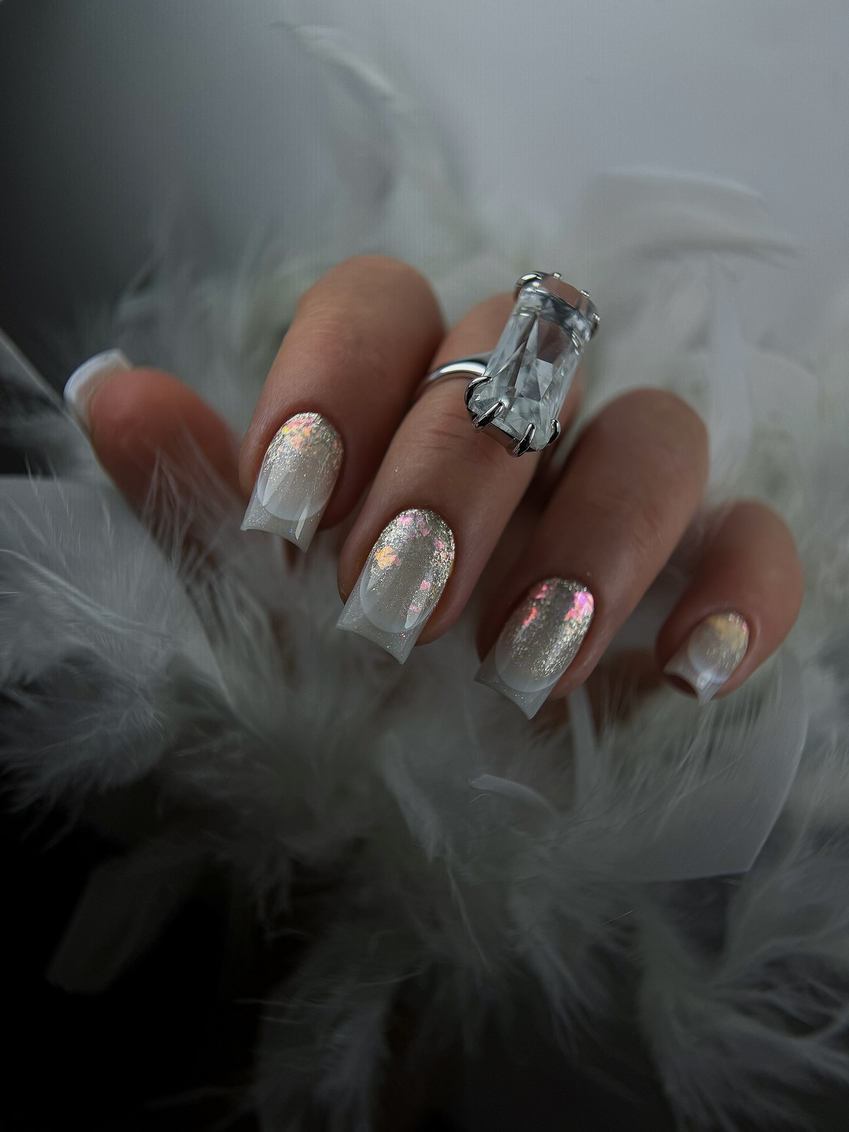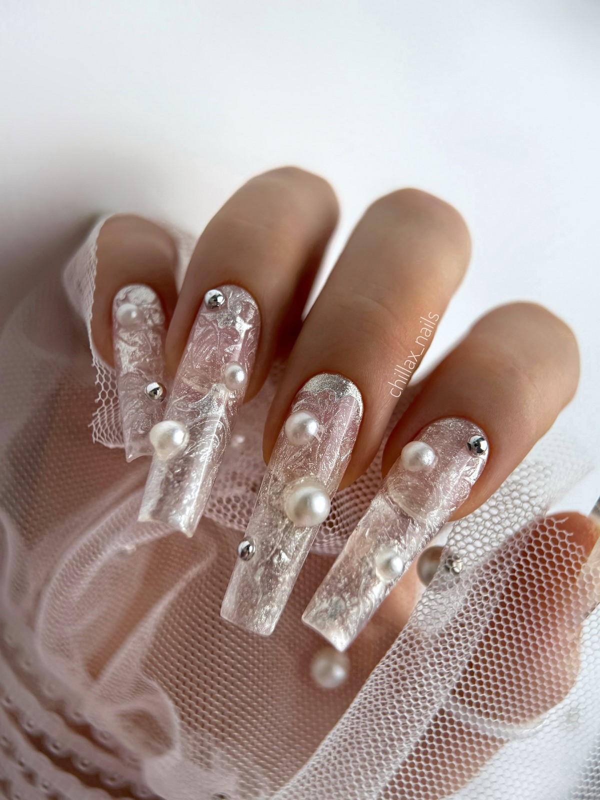 - Декор и украшения: стразы, жемчуг, бусины, паутинка, металлические акценты, минималистичный блеск.