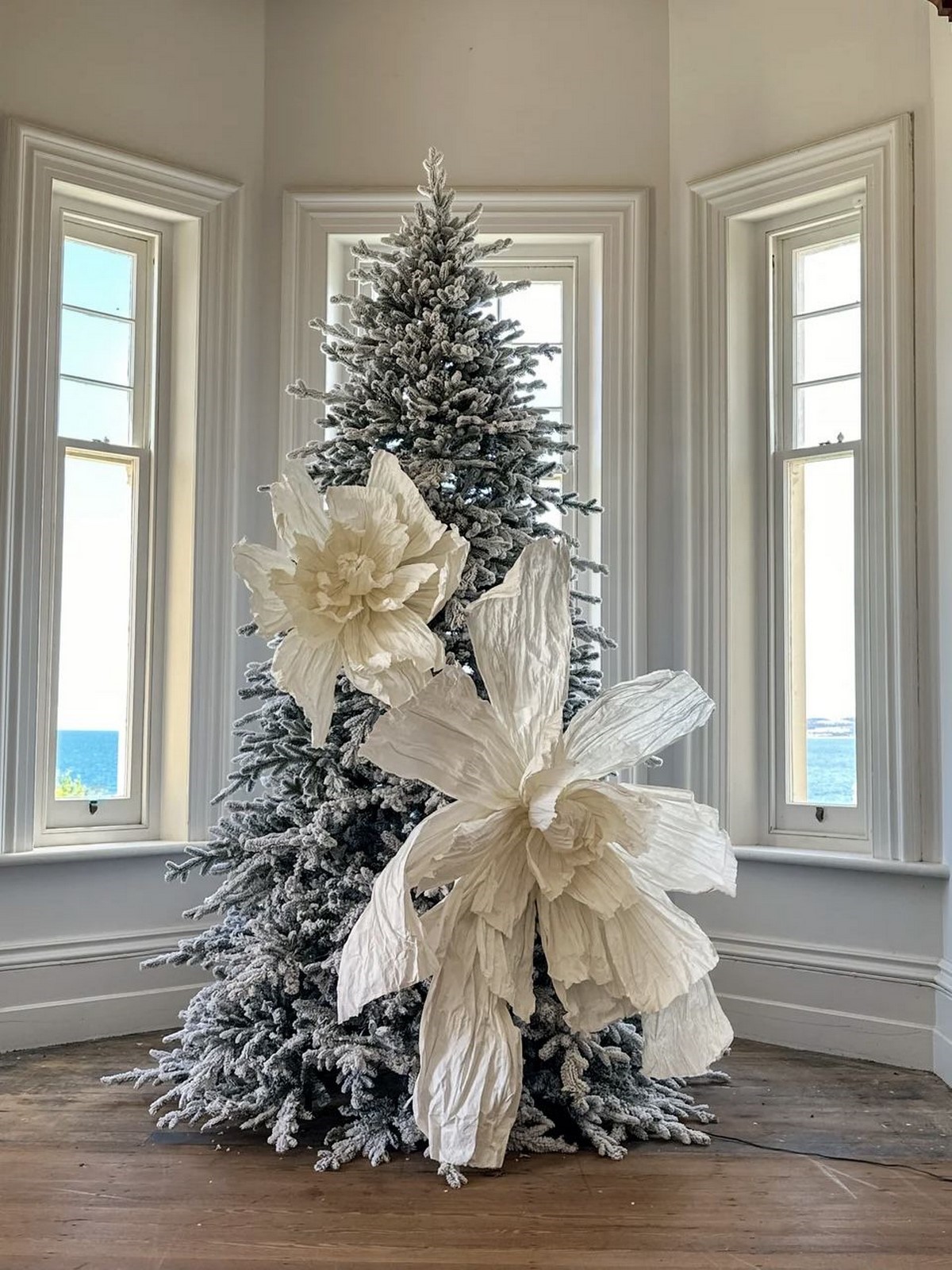 Интересно: Моноцветные елки снова в тренде, но теперь добавляют нюансы — например, весь декор в оттенках белого с разной фактурой: мат, перламутр, стекло.