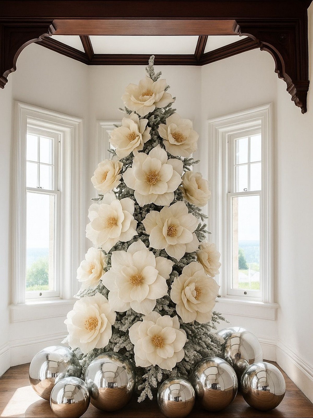 Интересно: Моноцветные елки снова в тренде, но теперь добавляют нюансы — например, весь декор в оттенках белого с разной фактурой: мат, перламутр, стекло.