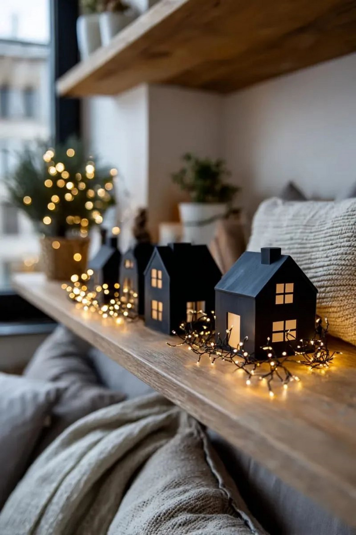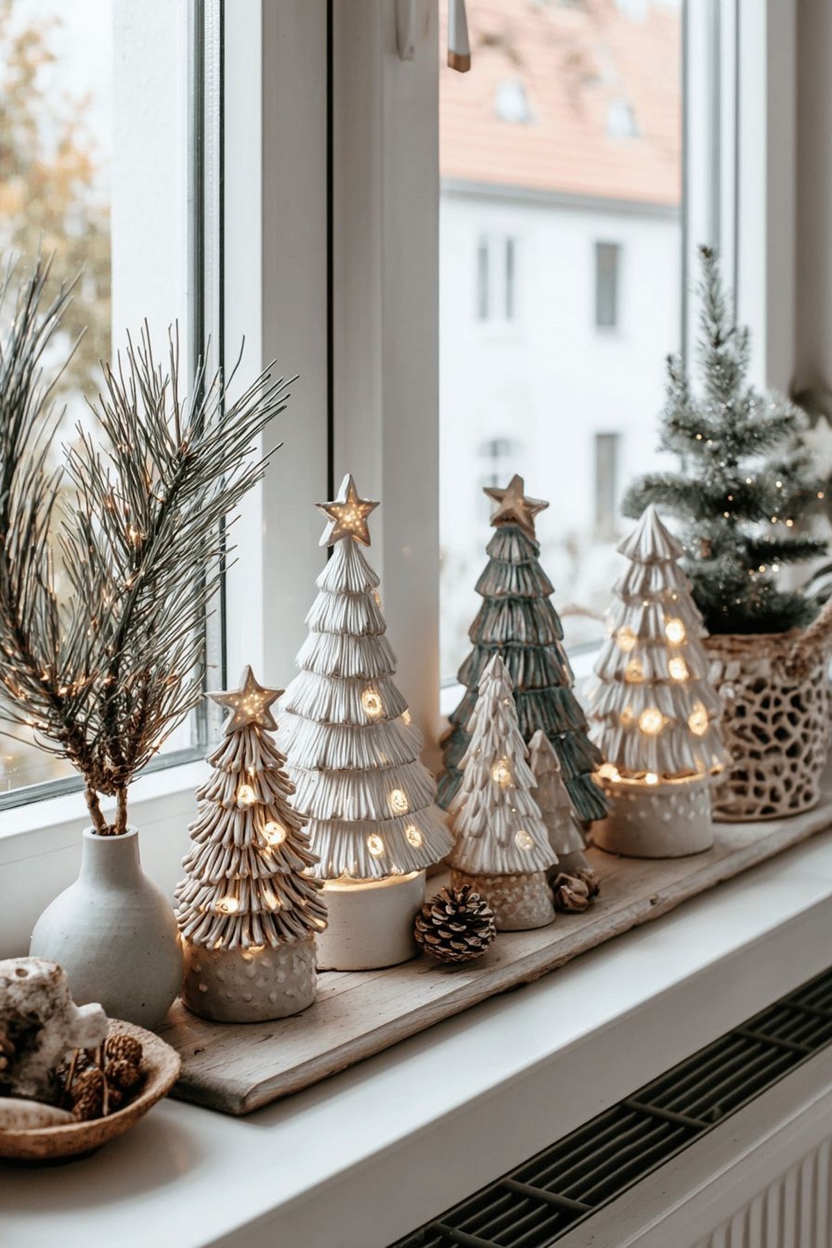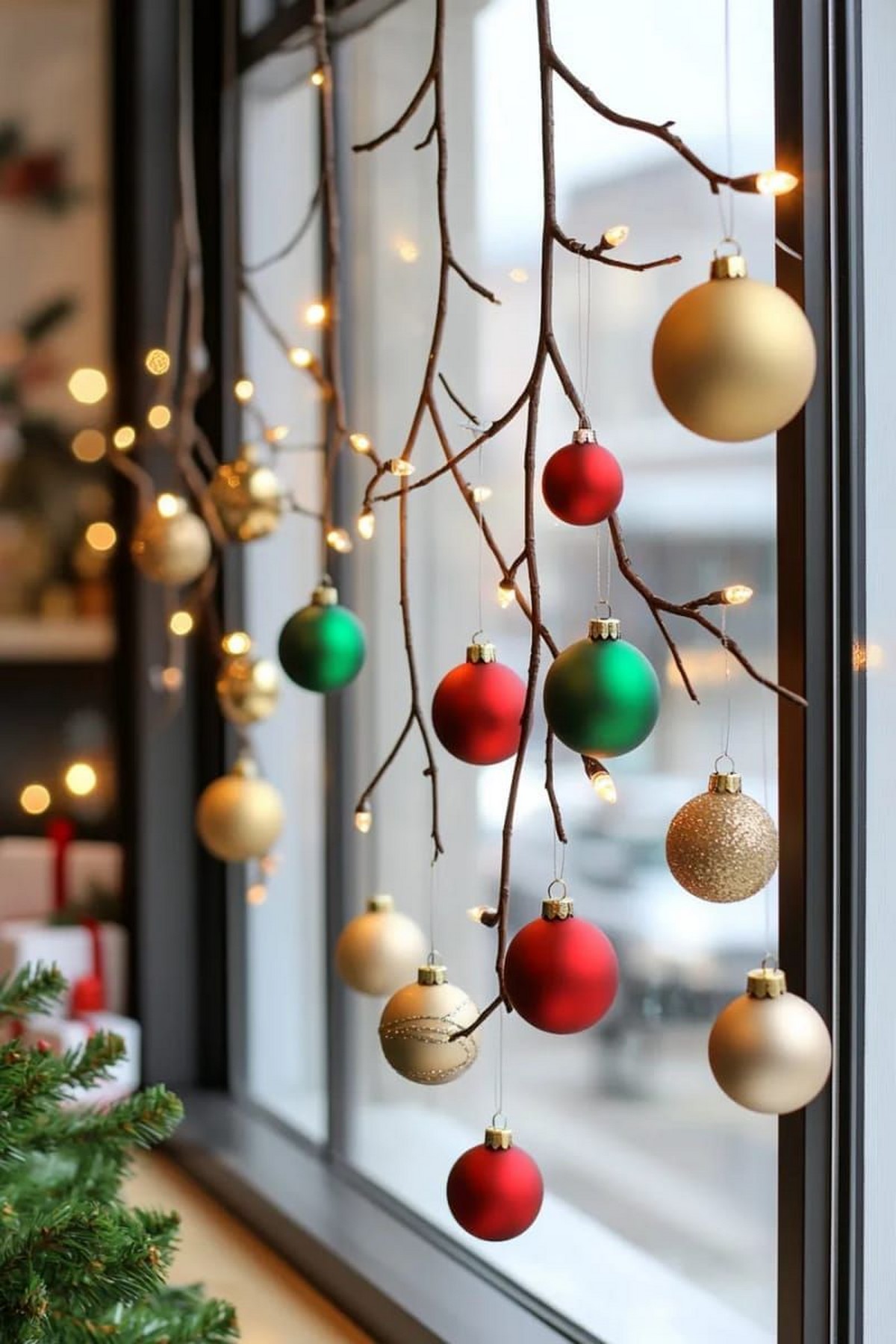 В 2026 году популярны оконные композиции из свечей (LED), небольших ёлочек и мини-игрушек на подоконнике — создают уют улицам и дому одновременно.