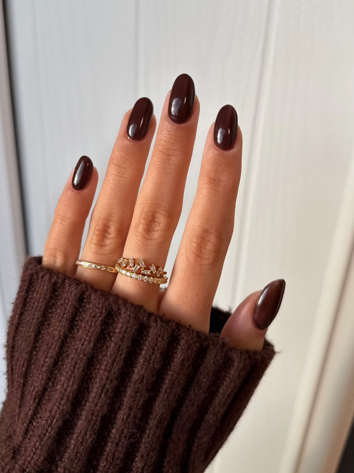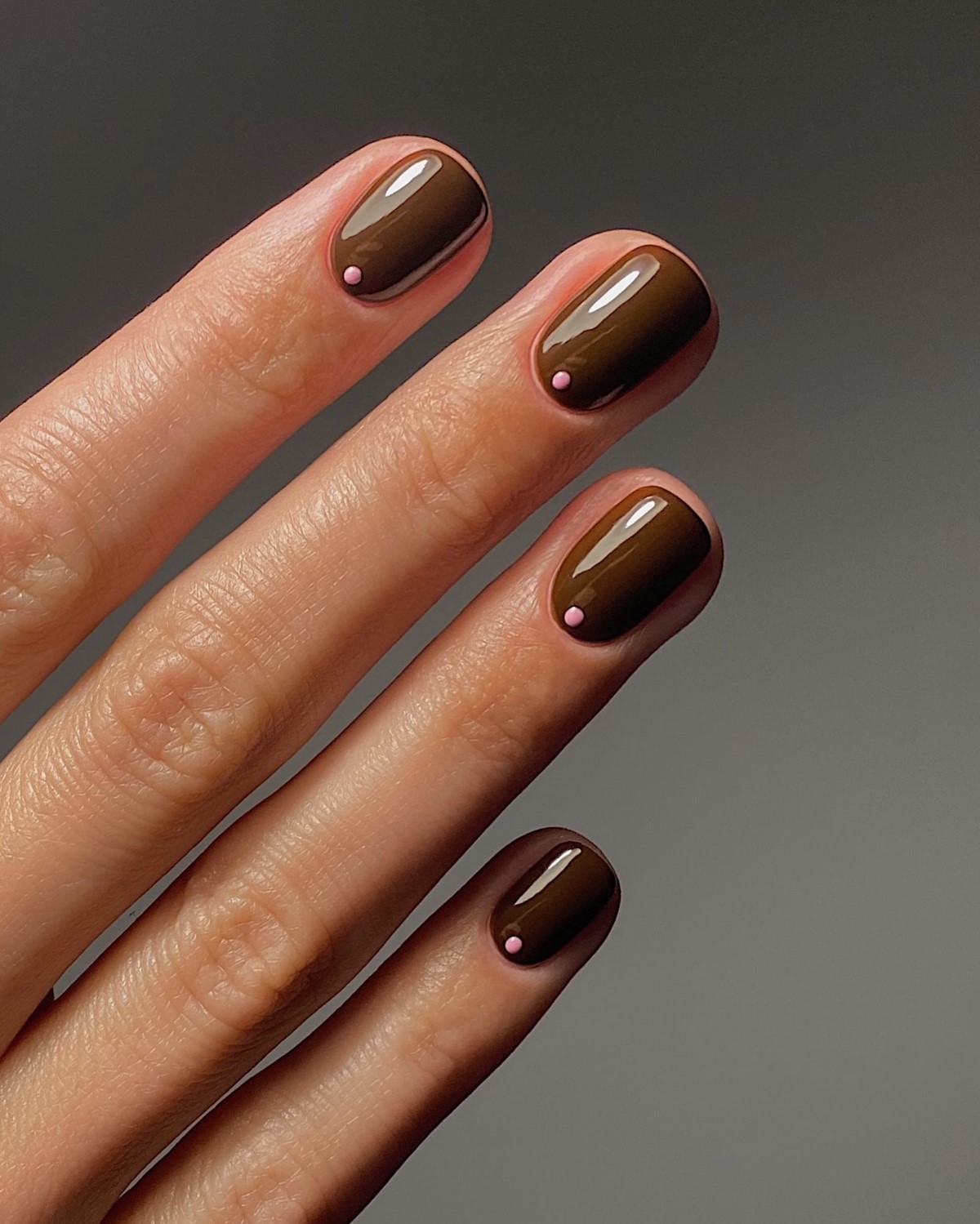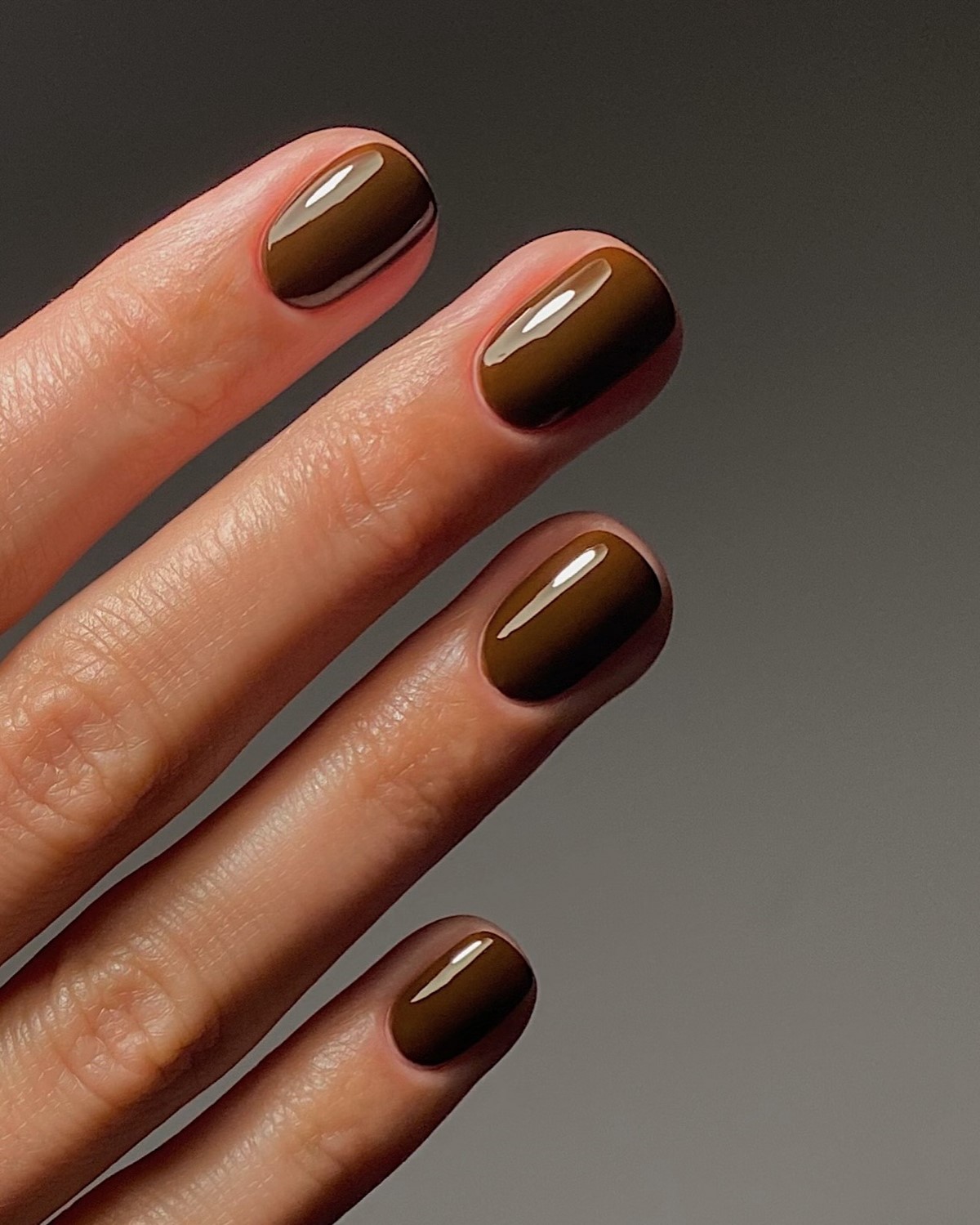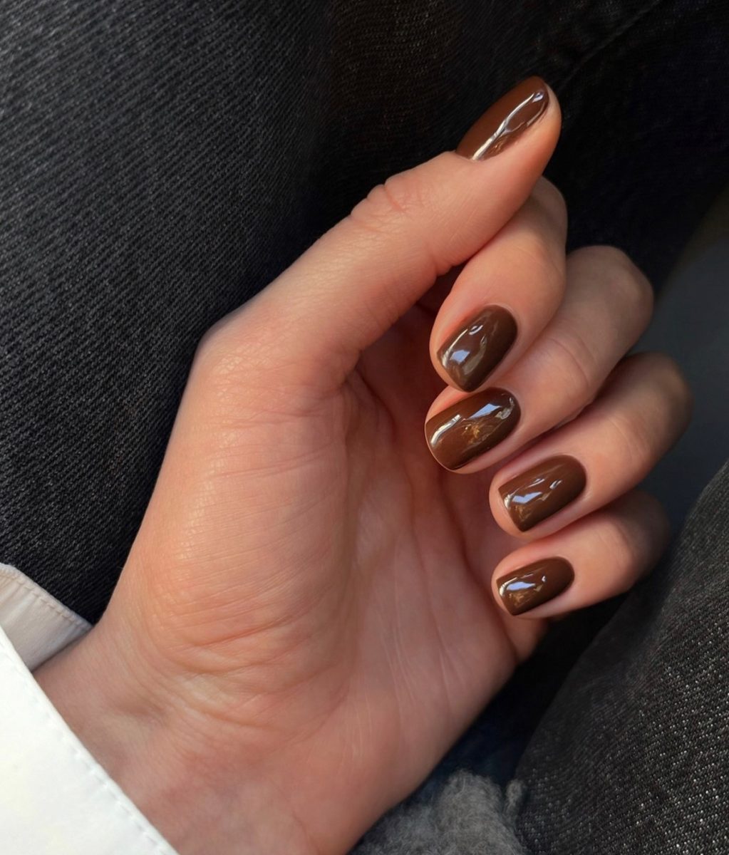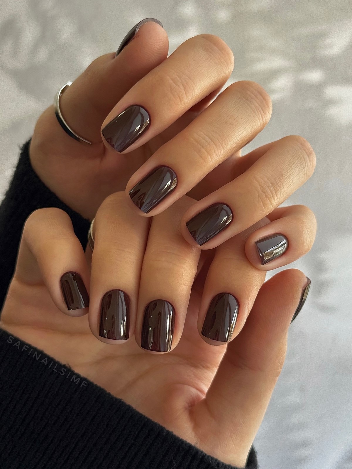 Такой вариант особенно актуален для тех, кто предпочитает чистоту форм и аккуратность. Минимализм в шоколадных оттенках легко вписывается в любой гардероб и подчеркивает ухоженность рук.