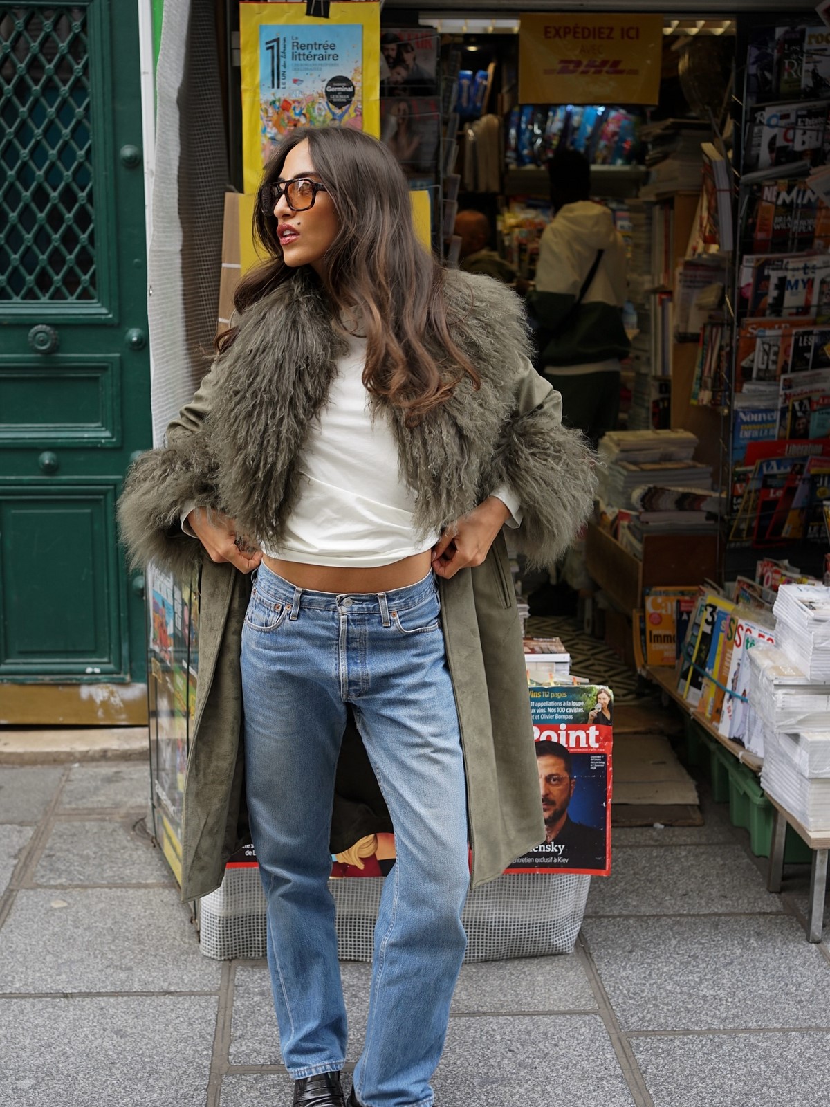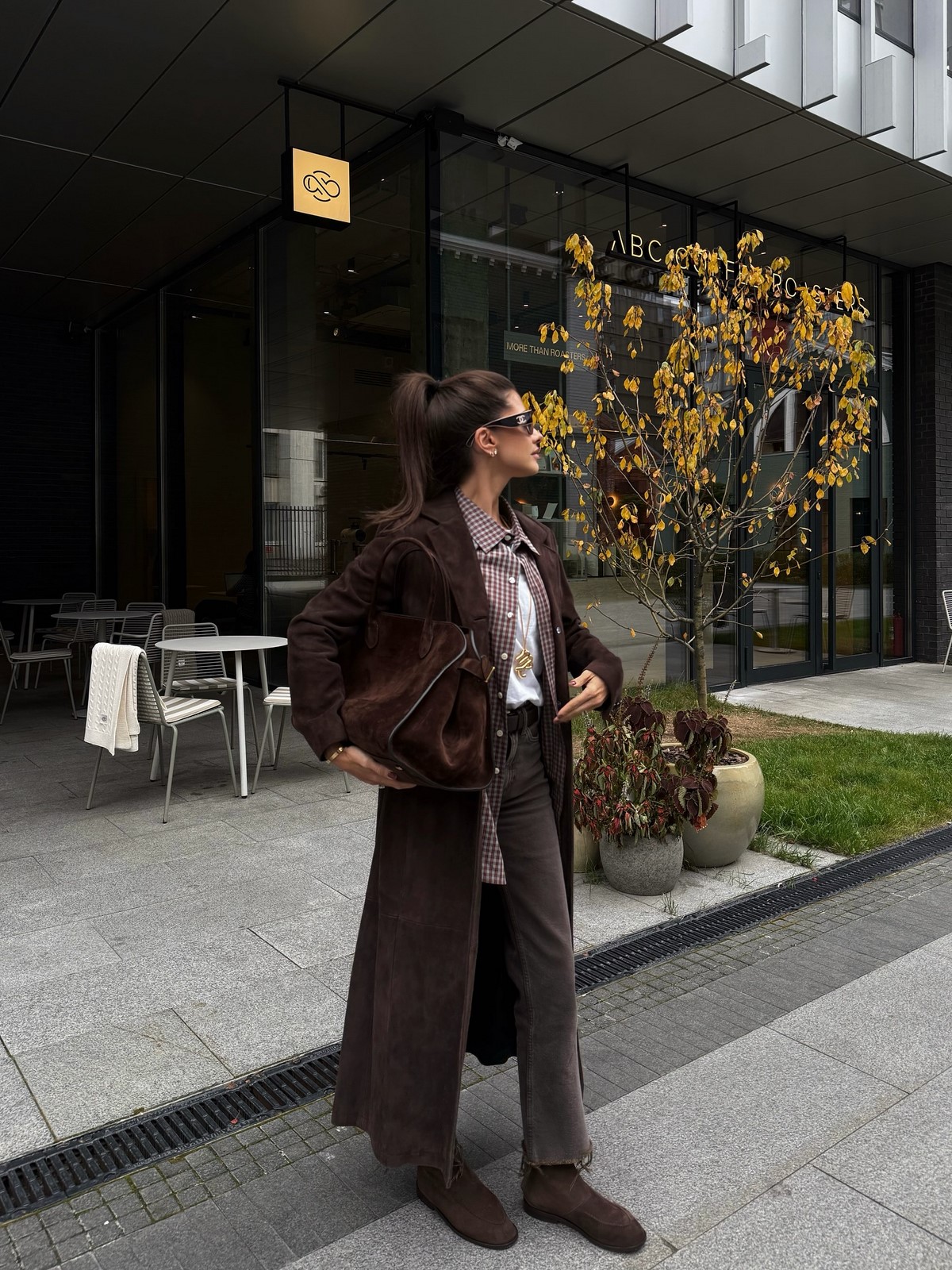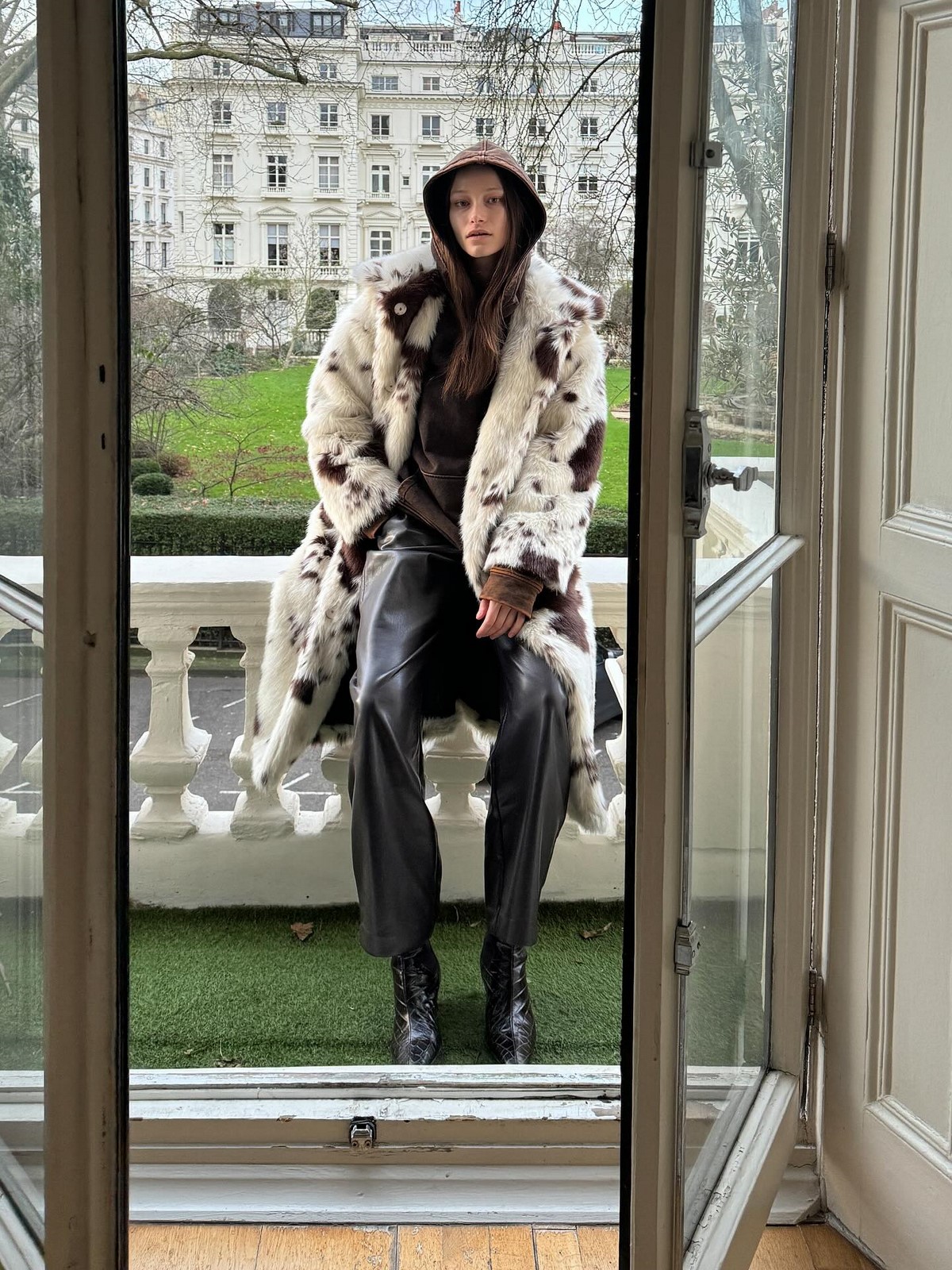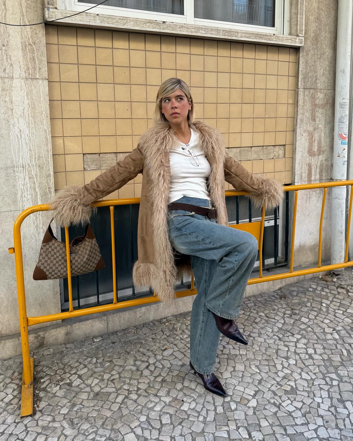 - Фактуры: мех, кожа, бархат, плотный трикотаж и деним. Контраст мягких и грубых материалов в одном образе задает тон сезону.