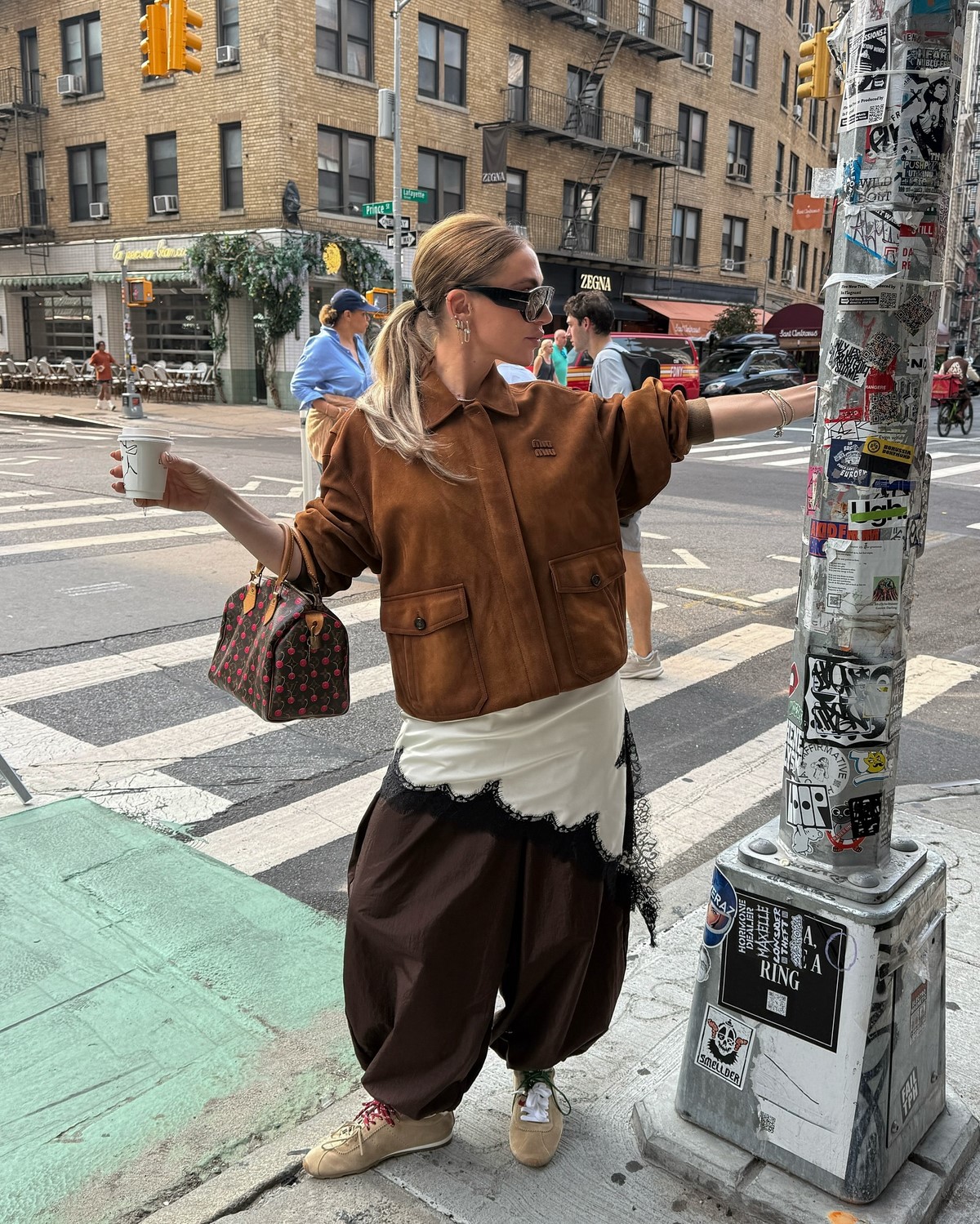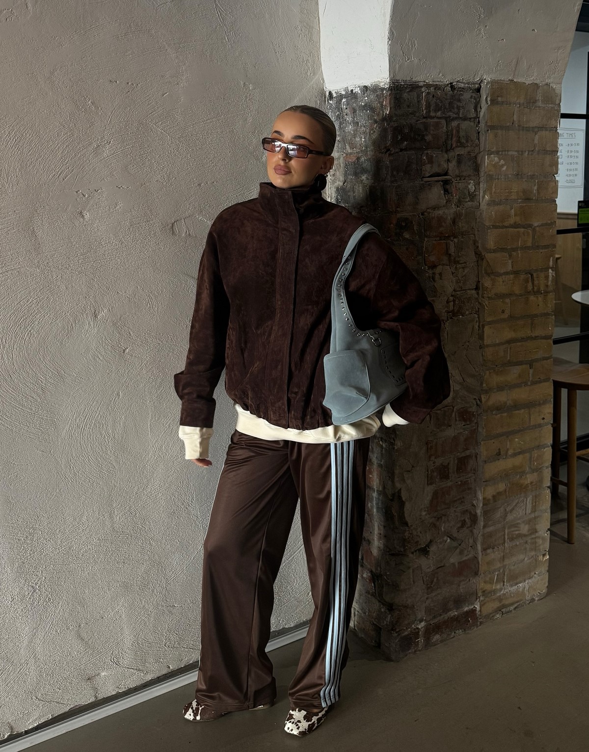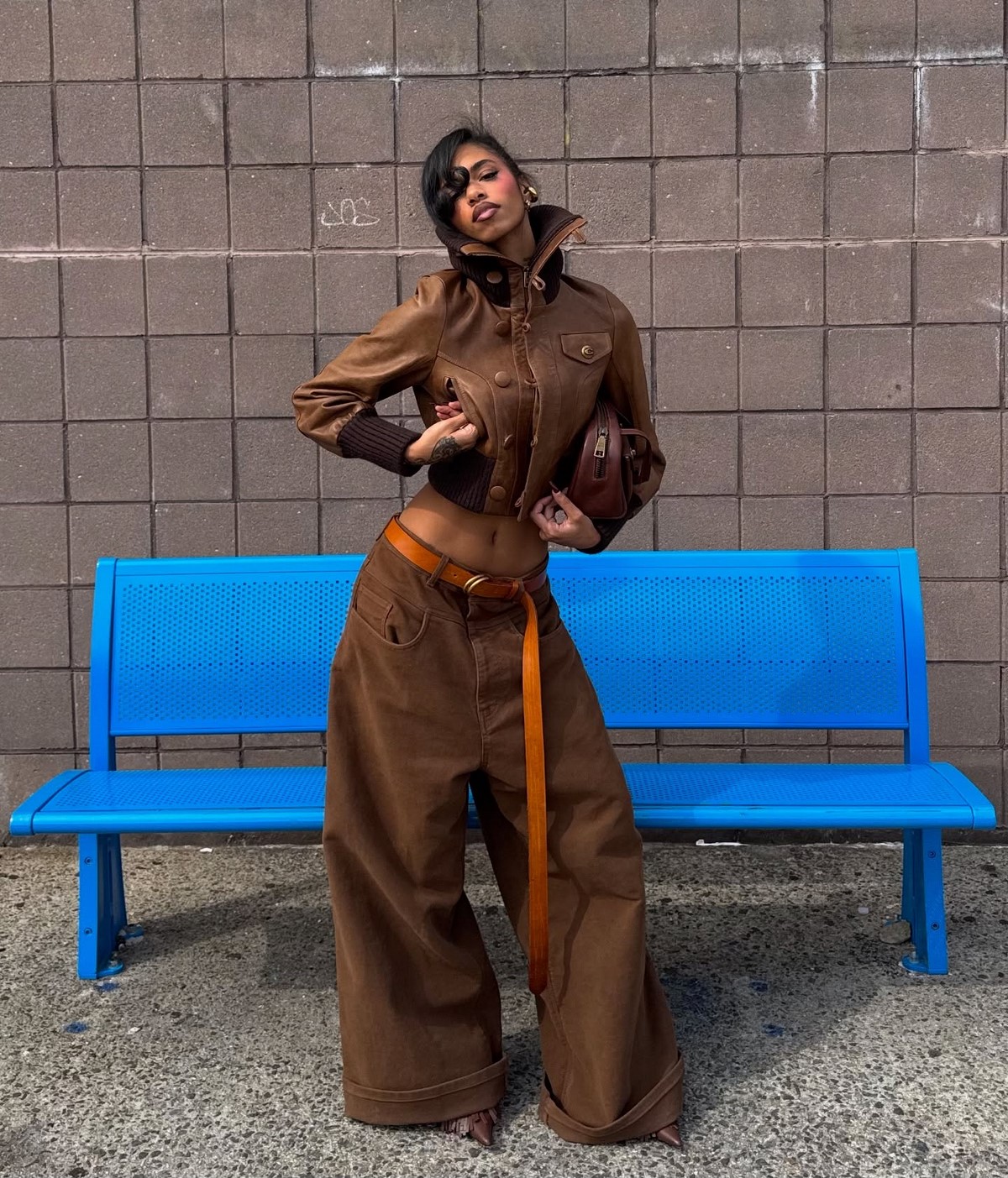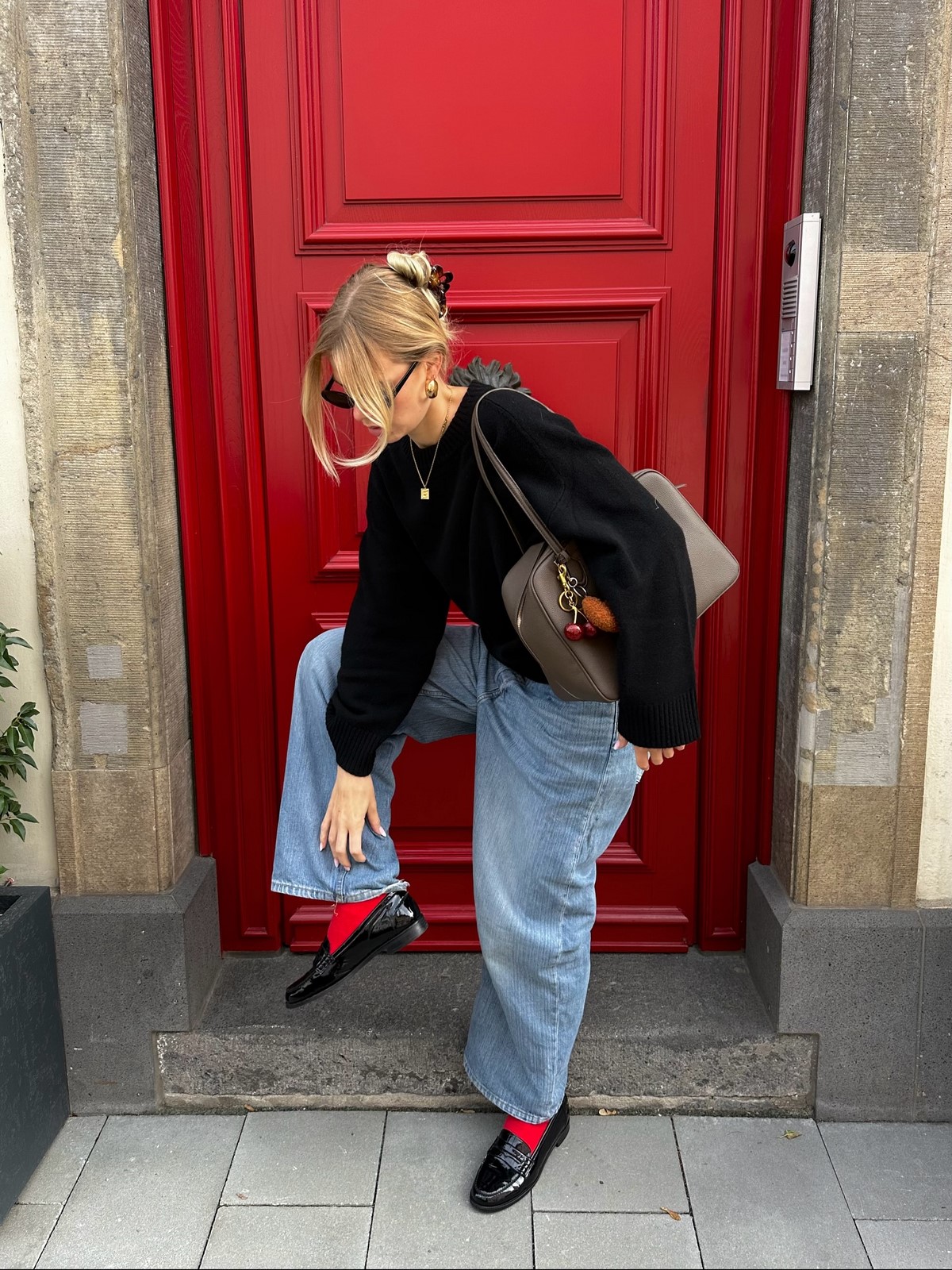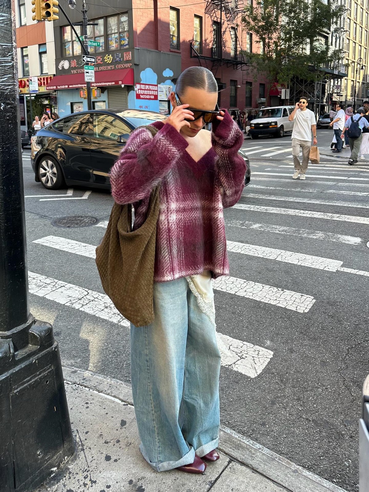 - Фактуры: мех, кожа, бархат, плотный трикотаж и деним. Контраст мягких и грубых материалов в одном образе задает тон сезону.