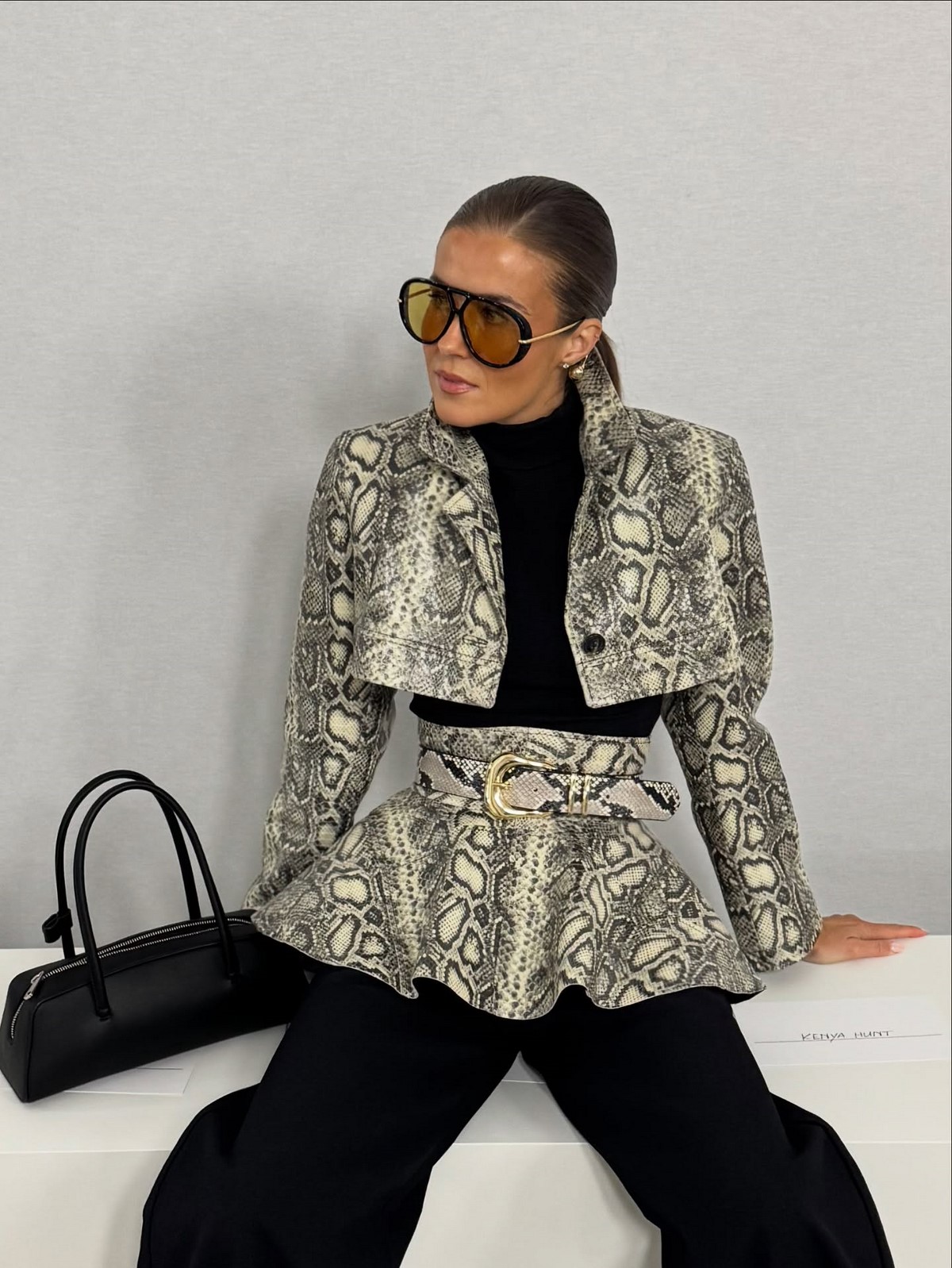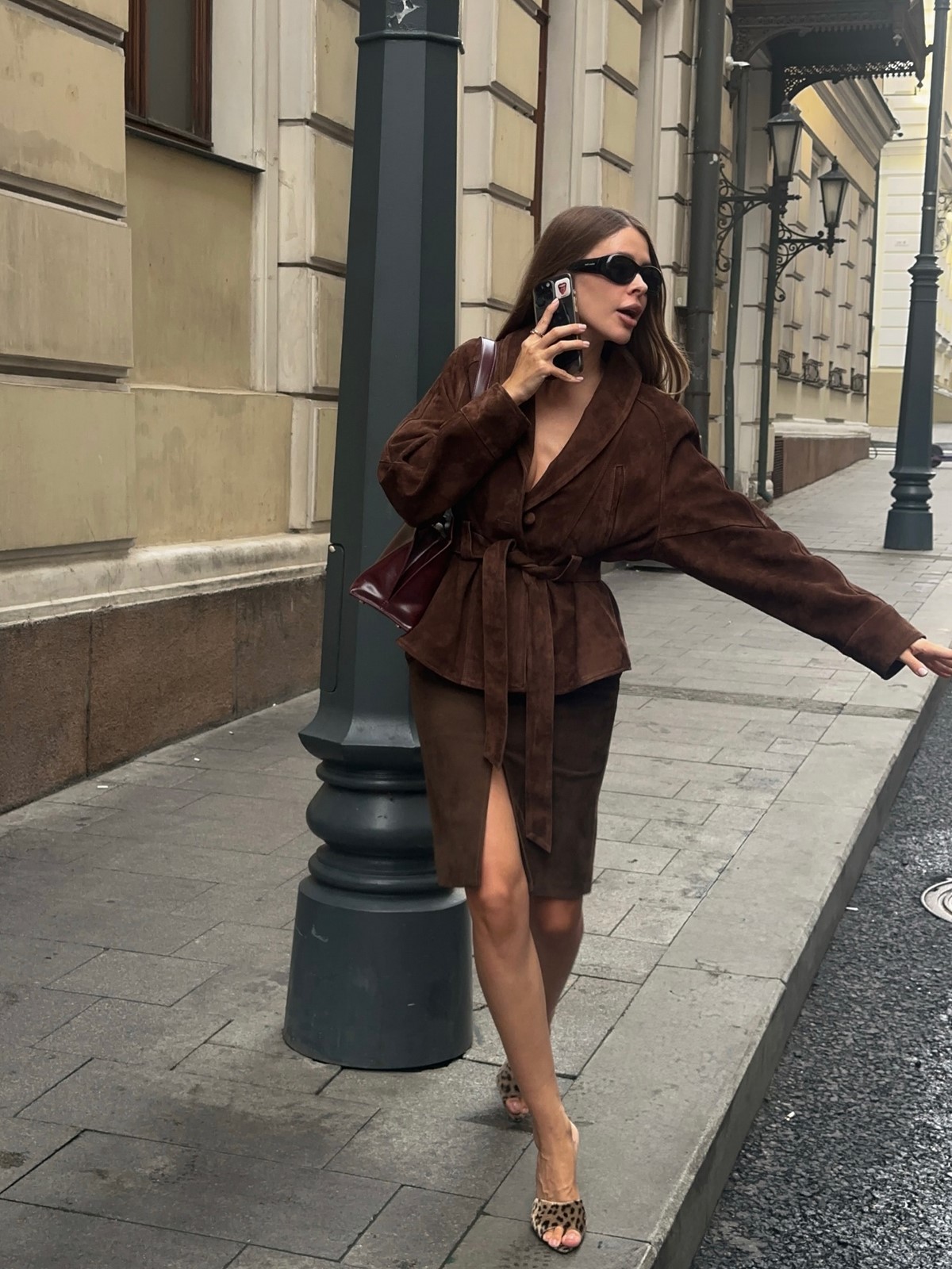 Анималистические узоры остаются фаворитами, но змеиный принт выходит на первый план. Он добавляет образу дерзости и сексуальности, особенно в сочетании с кожей и металлизированными тканями. Такой мотив уместен как в повседневных луках (например, на сапогах или сумках), так и в вечерних образах.