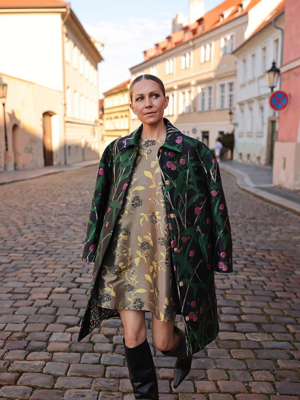 Флоральные мотивы остаются в тренде и зимой. Дизайнеры интегрируют цветы в платья из плотных тканей, жакеты и даже пуховики, делая образ более женственным и романтичным. Сдержанные оттенки флористики прекрасно сочетаются с глубокими зимними цветами, создавая гармонию между свежестью и теплом. Такой принт можно носить как в total-look, так и в качестве акцента.