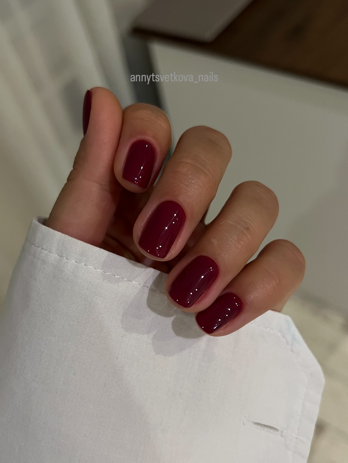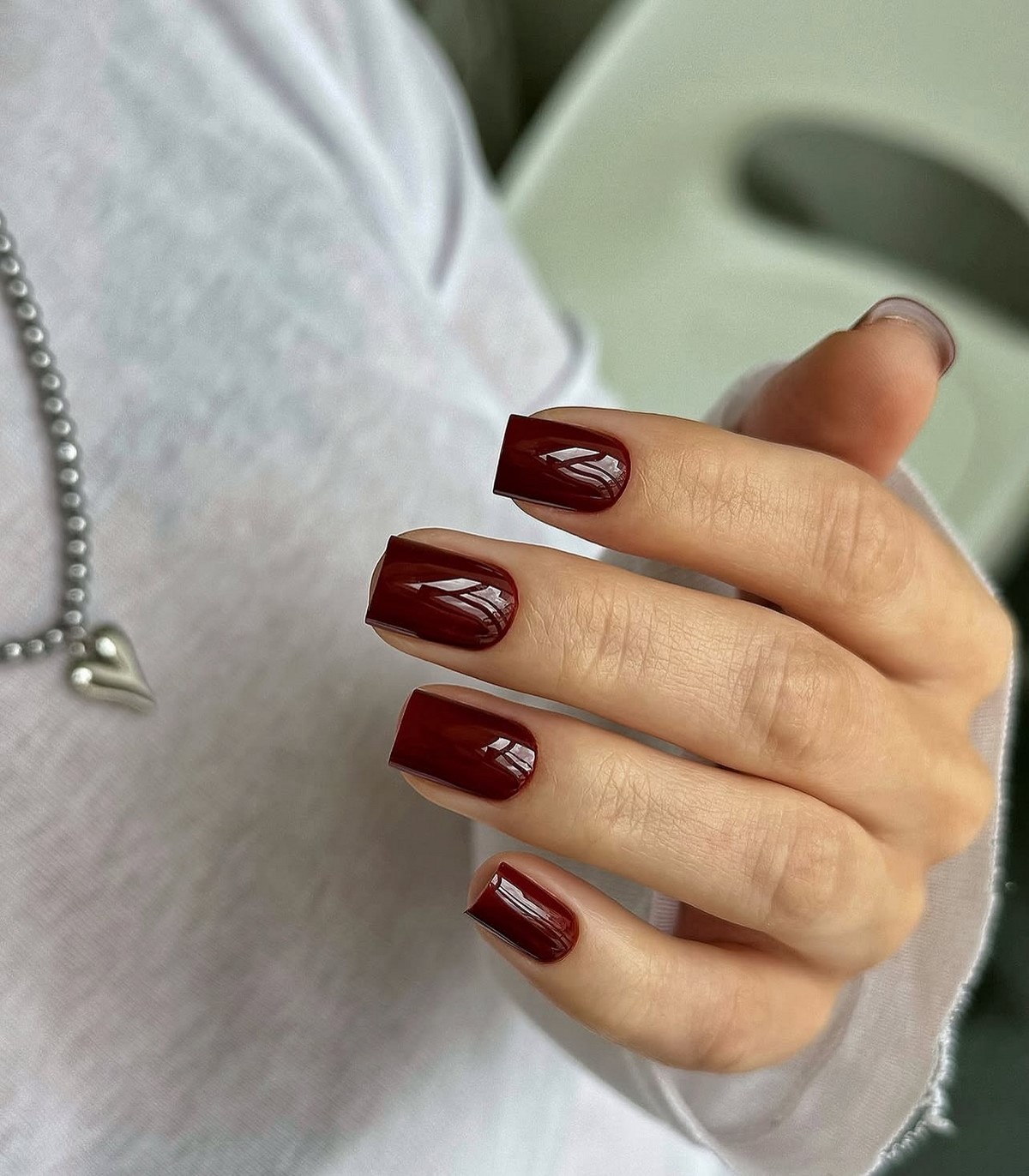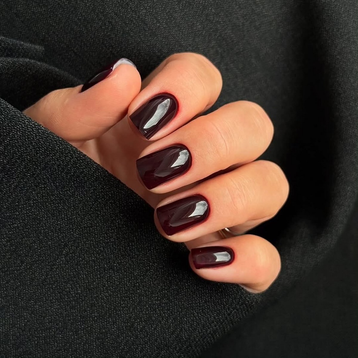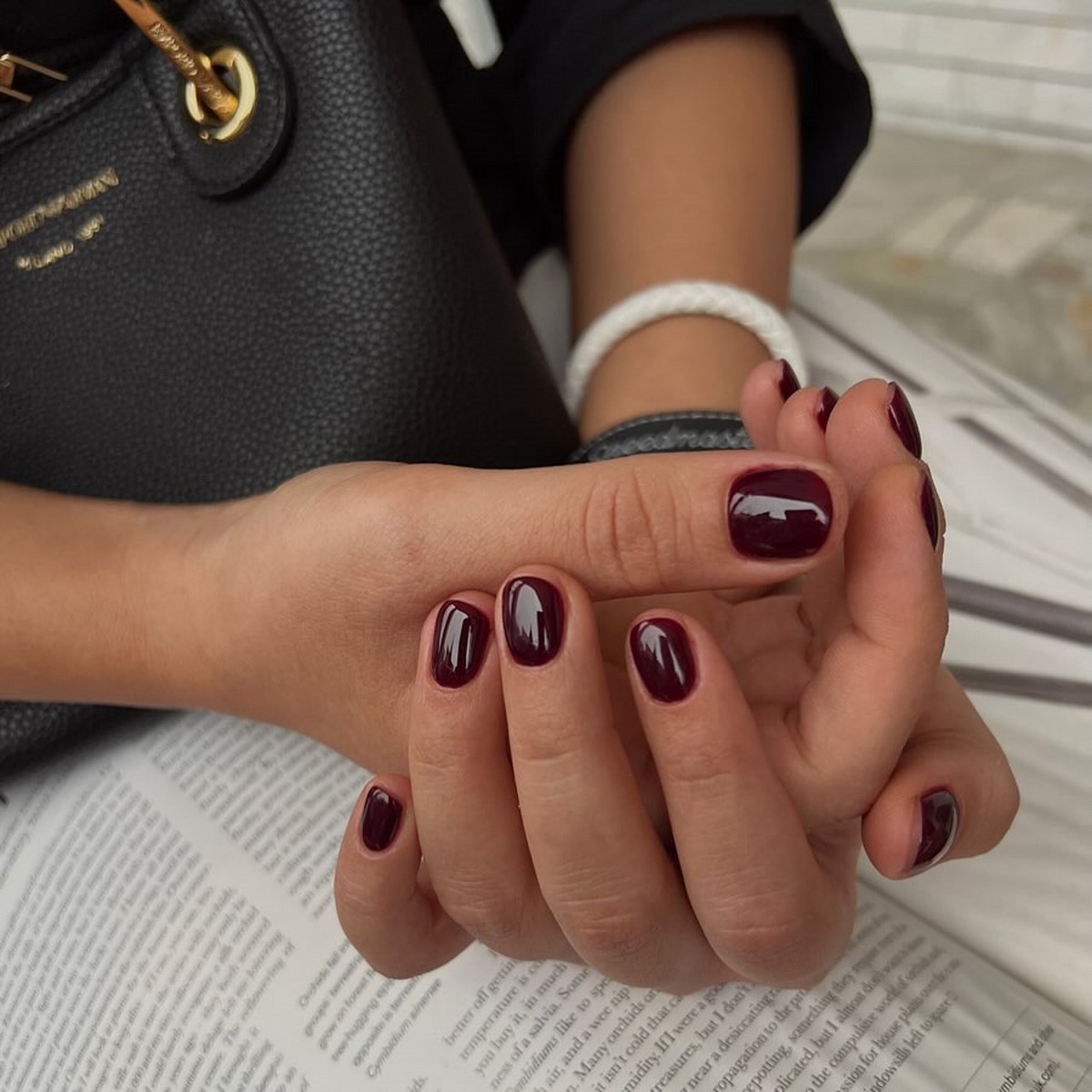 Бордовый — воплощение страсти и уверенности. Этот оттенок подходит для любых форм ногтей и идеально подчеркивает осенний гардероб. В ноябре 2025 он становится ключевым акцентом вечерних луков и отлично смотрится в глянцевом или бархатном исполнении.