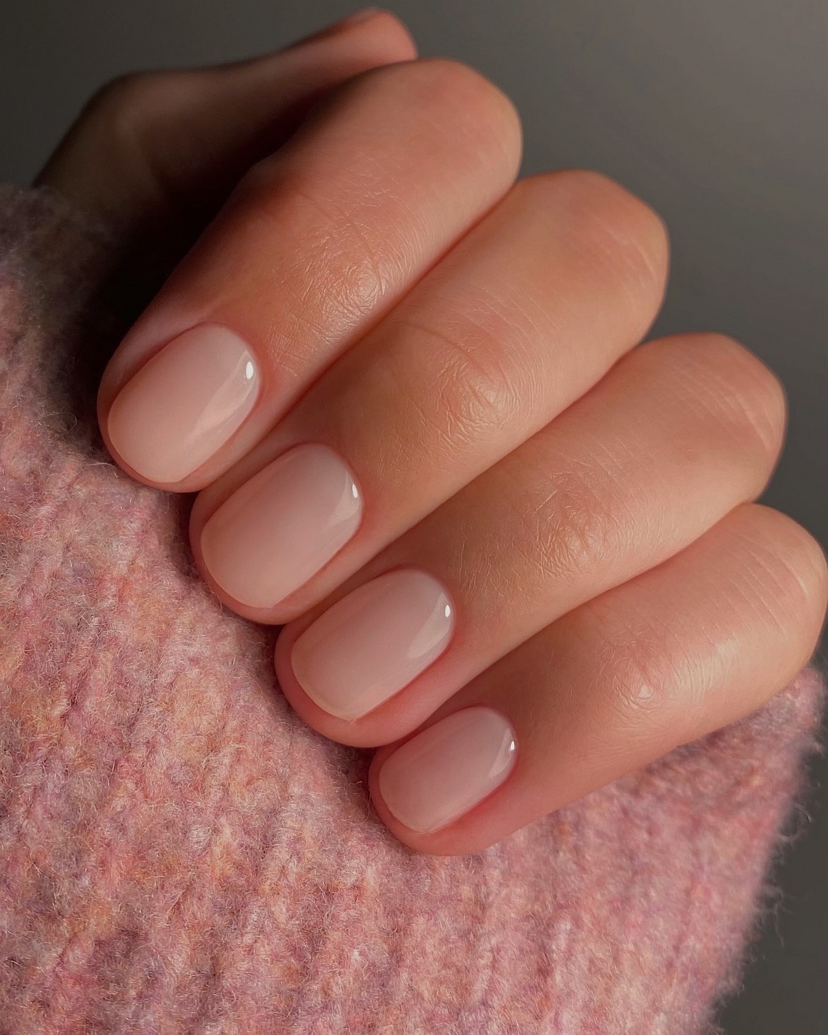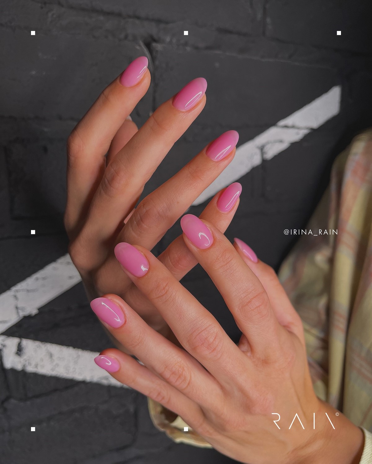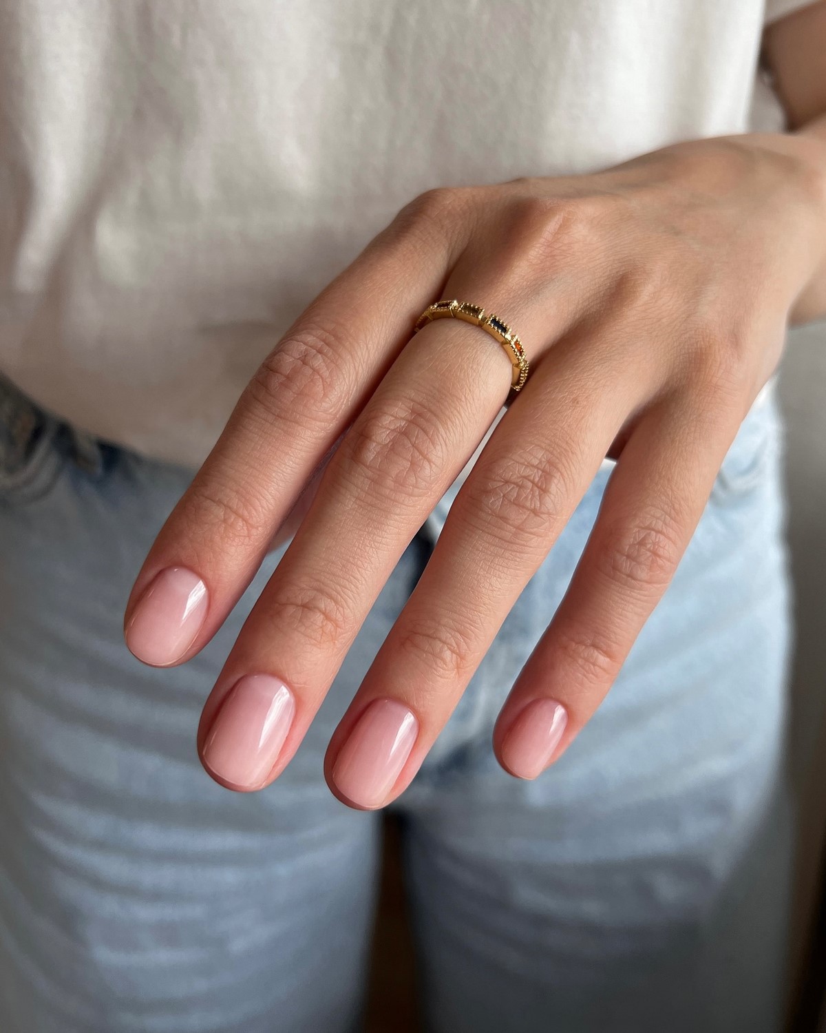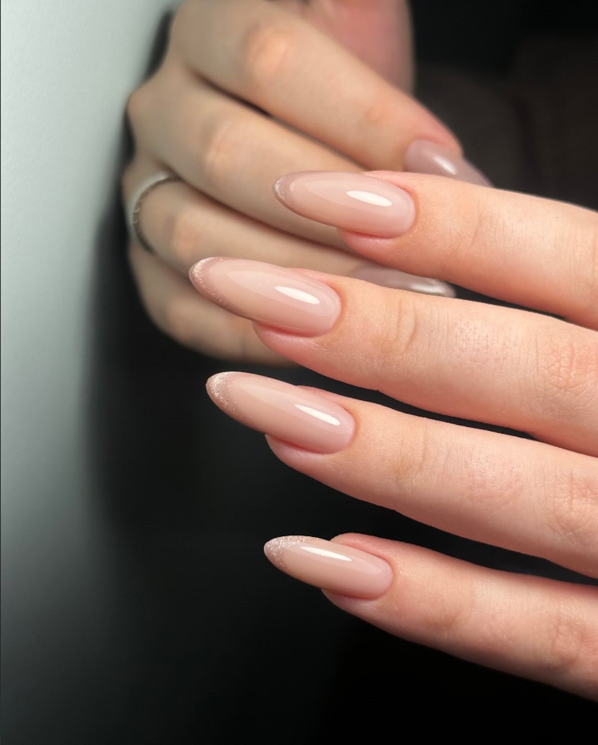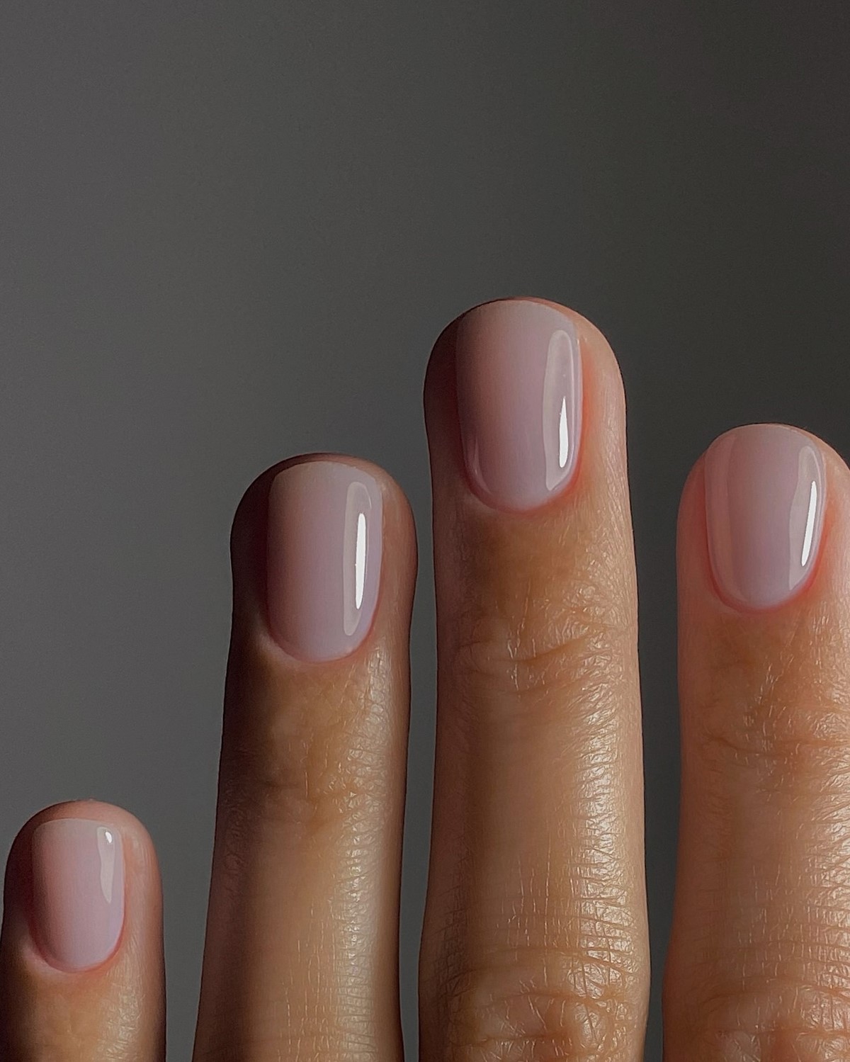 Нежный розовый с легкой прозрачностью — один из самых модных оттенков для тех, кто выбирает женственность и деликатность. В 2025 году он особенно актуален в сочетании с эффектом стеклянного покрытия или минималистичным французским дизайном.