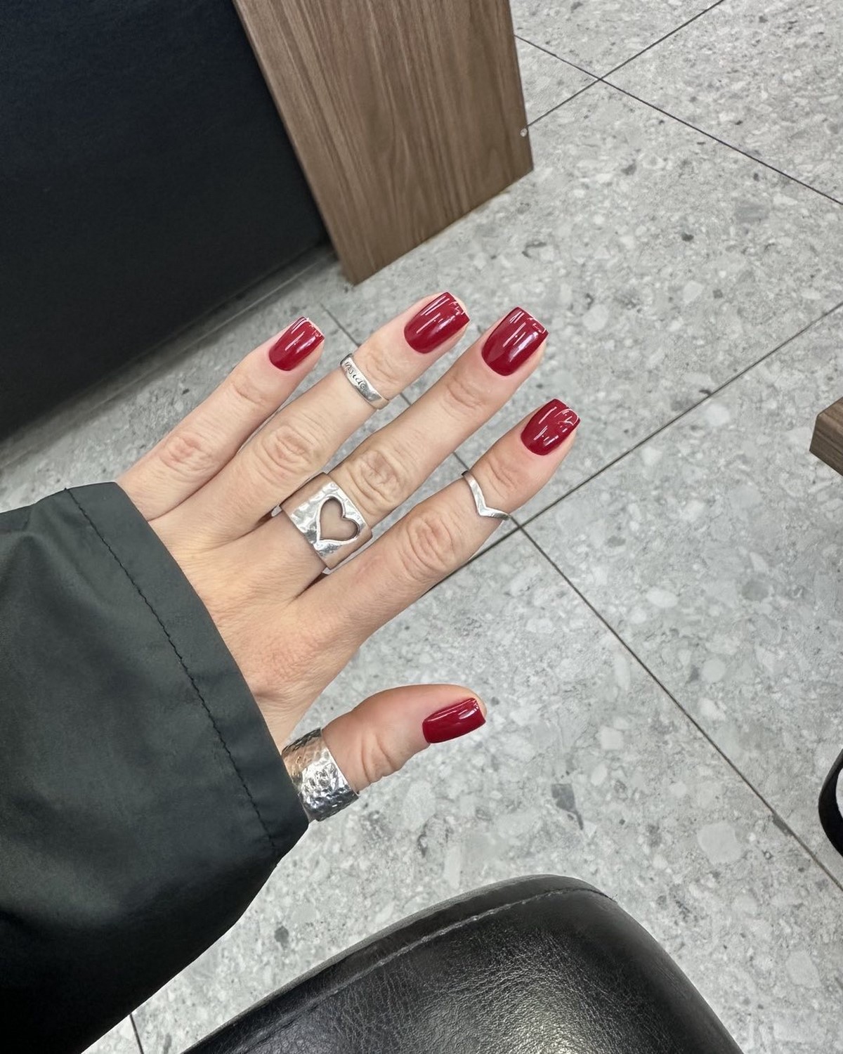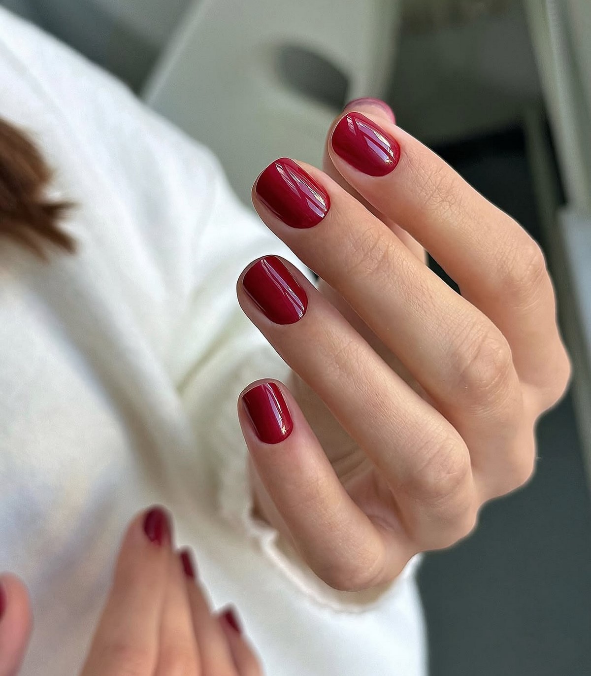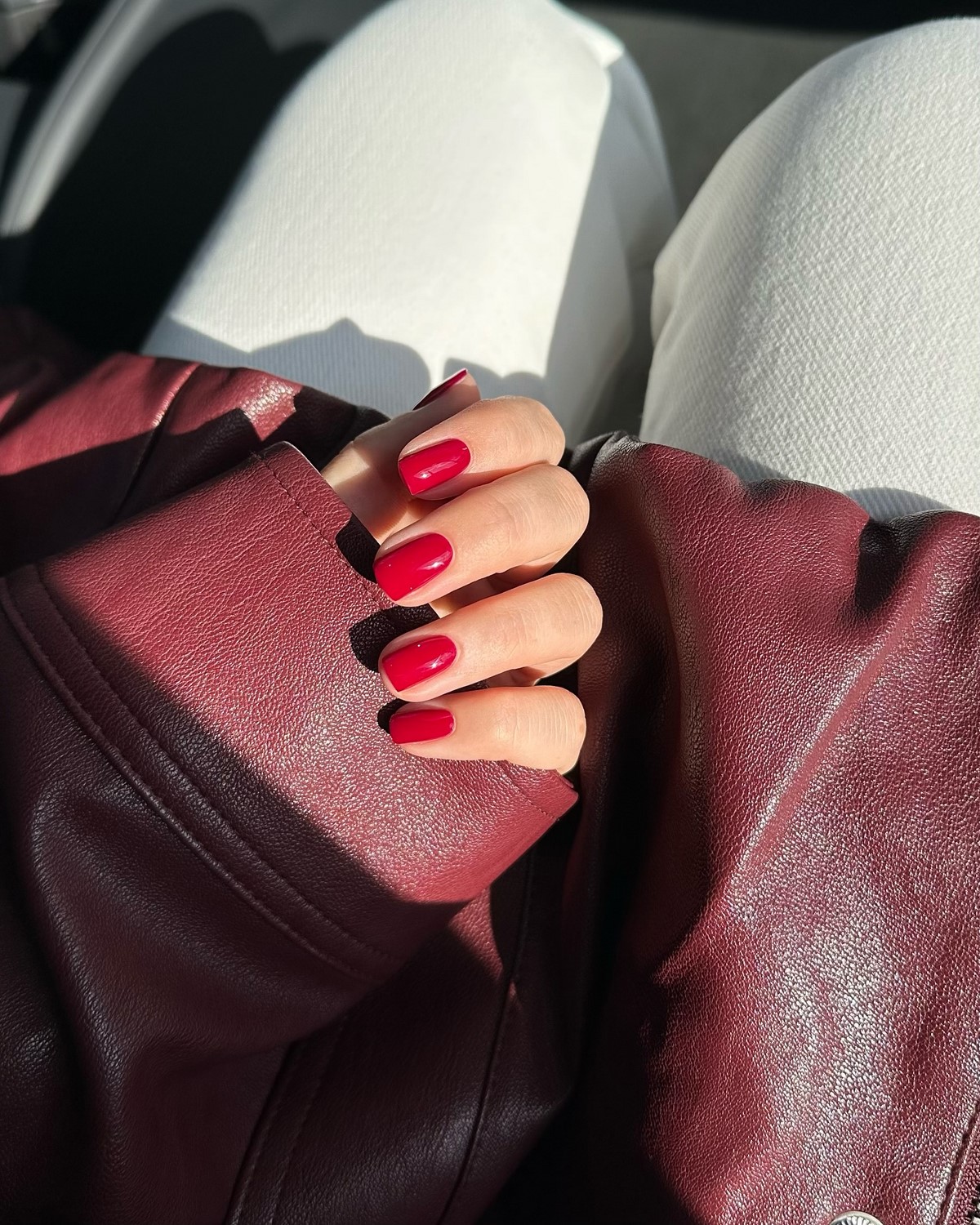 Вечная классика, которая никогда не выходит из моды. В ноябре 2025 актуальны как теплые алые, так и глубокие винные тона. Такой маникюр придает уверенность, делает руки выразительными и подходит под любой стиль одежды.