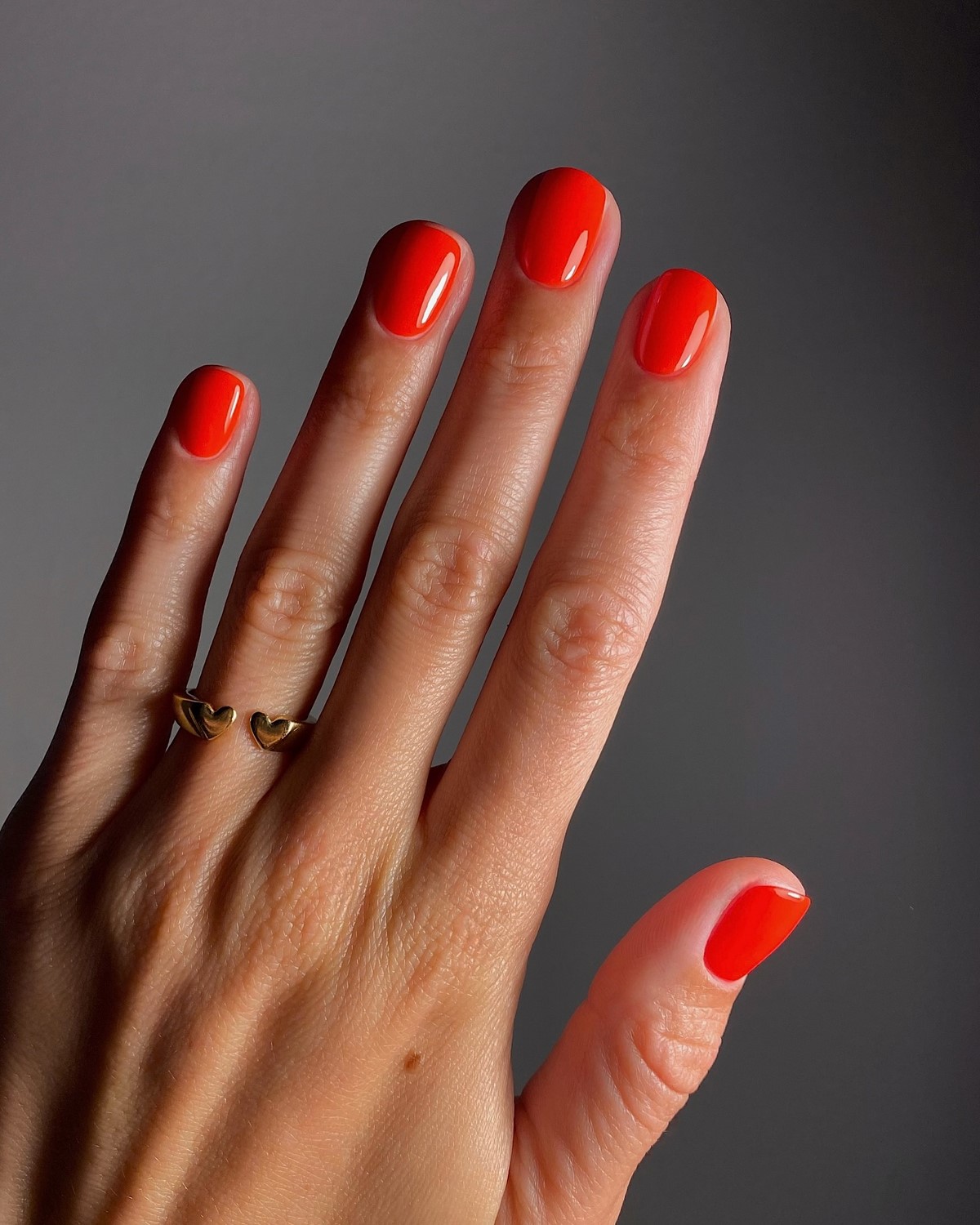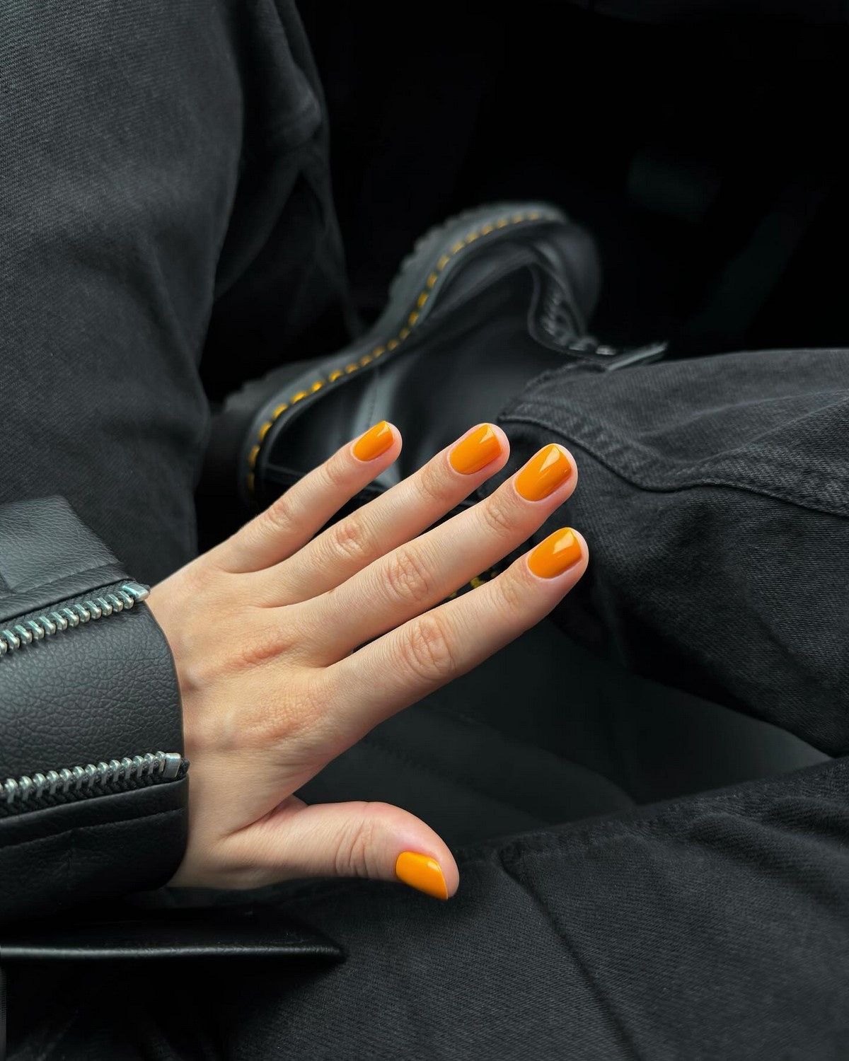 Яркий, энергичный и теплый — оранжевый цвет добавляет позитива даже в самые пасмурные дни. В ноябре он проявляется в приглушенных терракотовых и тыквенных тонах, идеально подходящих для коротких ногтей.