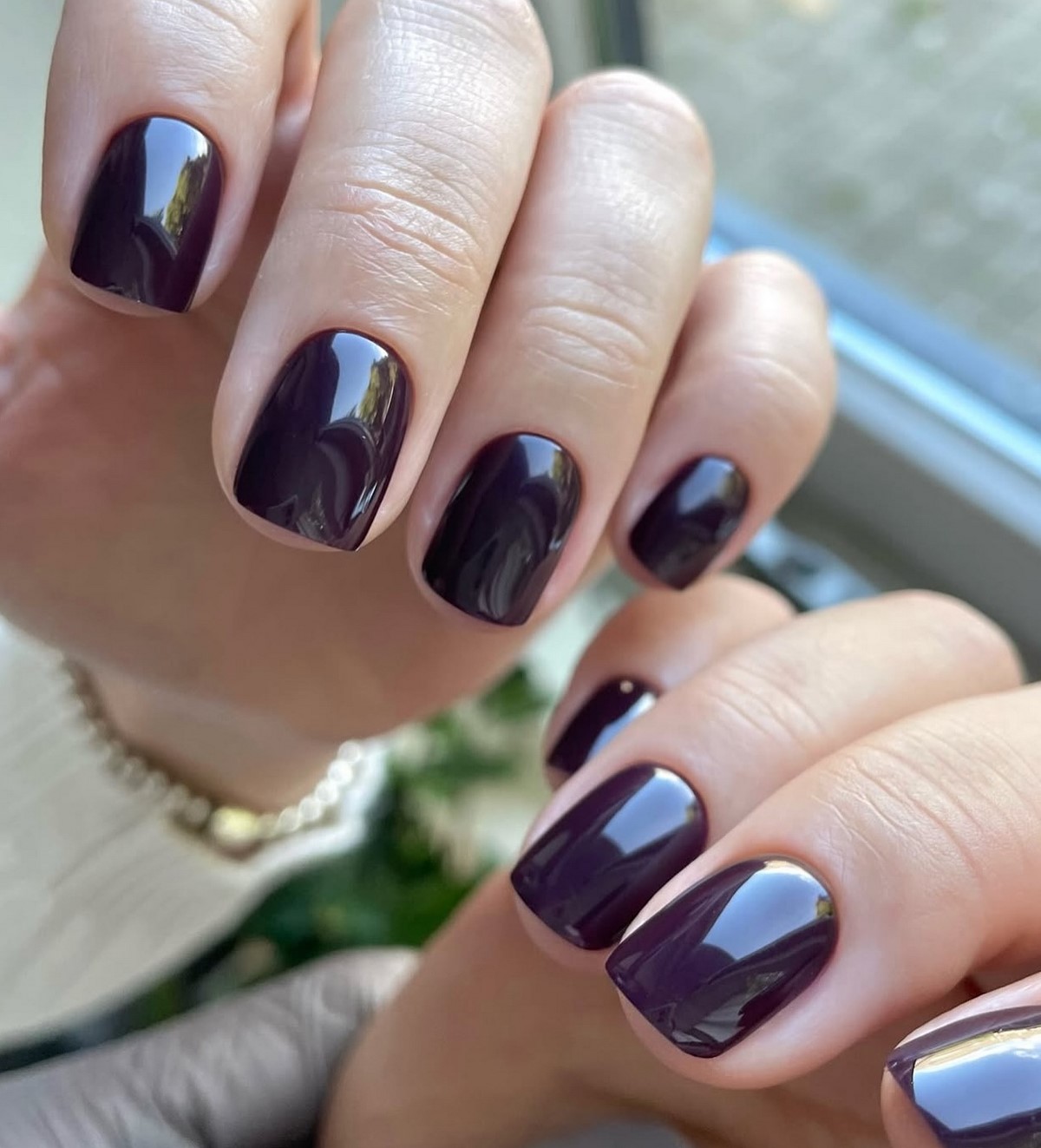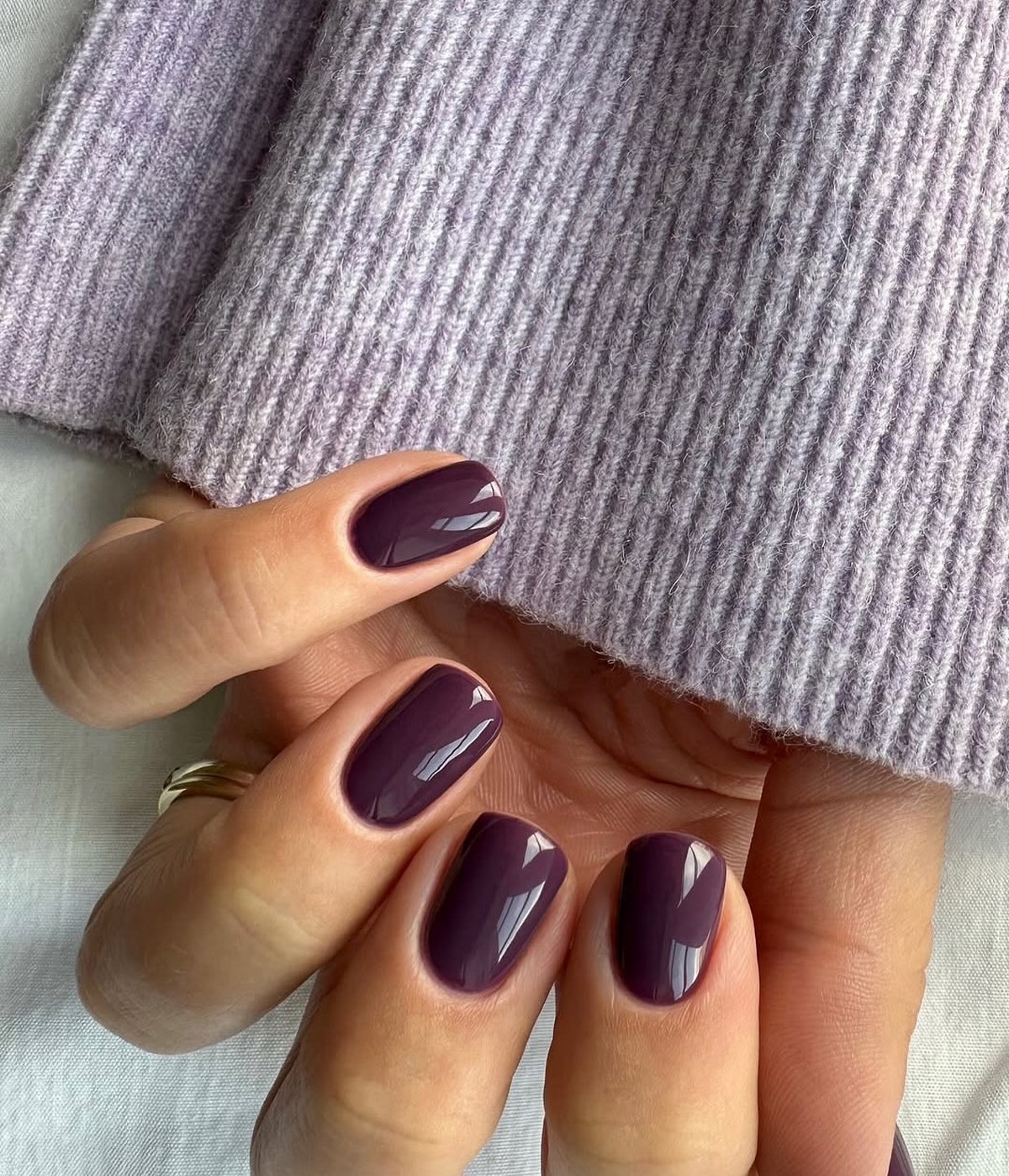 Сливовый — фаворит сезона. Глубокий, чувственный и немного загадочный оттенок подчеркивает женственность и элегантность. В 2025 году он часто используется в комбинации с золотым декором или минималистичными рисунками в стиле luxury-nude.