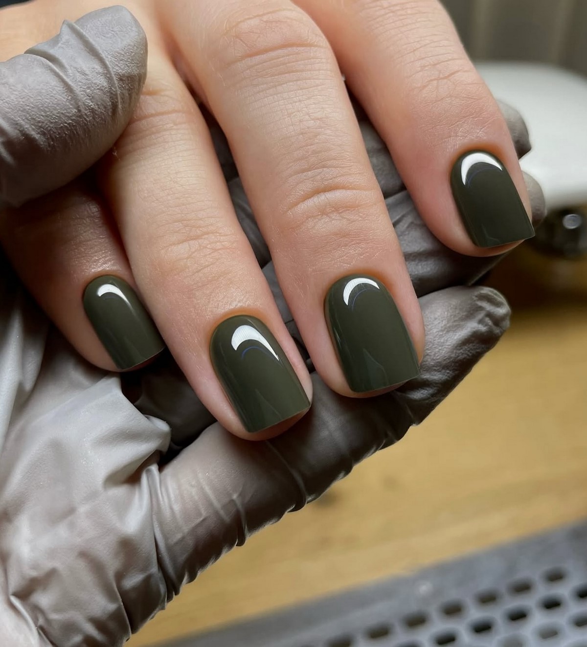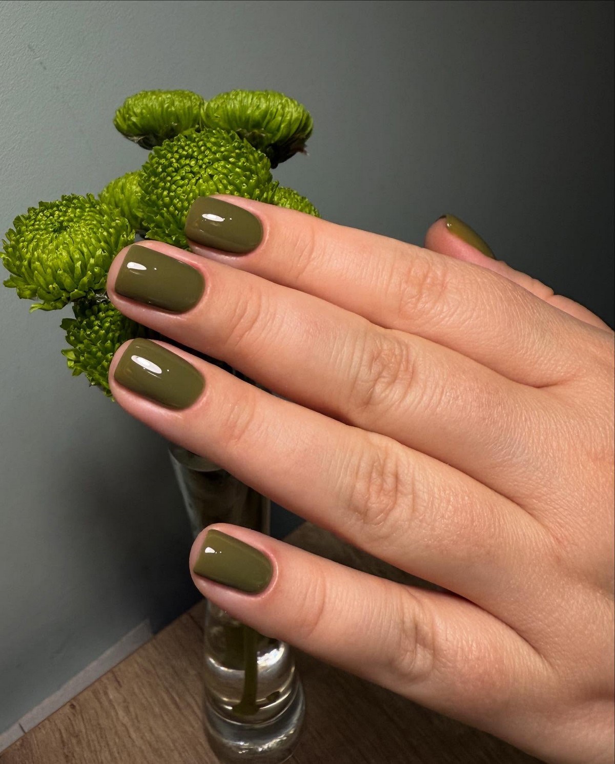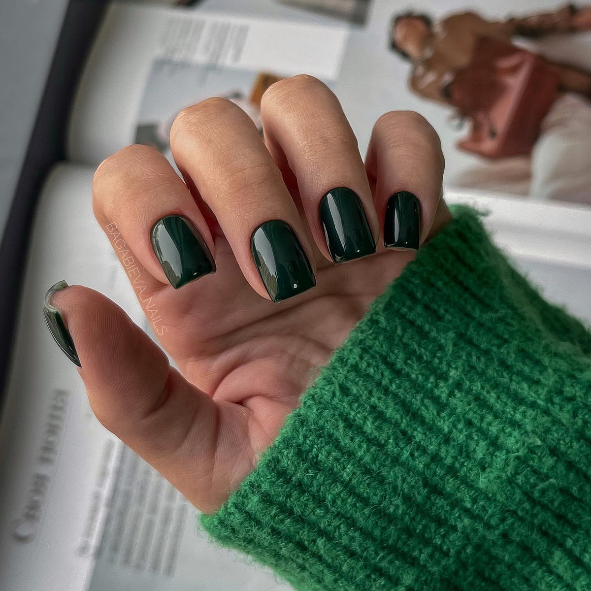 Изумрудный маникюр возвращается в тренды осени 2025 как символ благородства и спокойствия. Он придает рукам ухоженный вид и выглядит особенно эффектно на коротких ногтях квадратной формы. Сочетание с золотом делает этот оттенок по-настоящему праздничным.