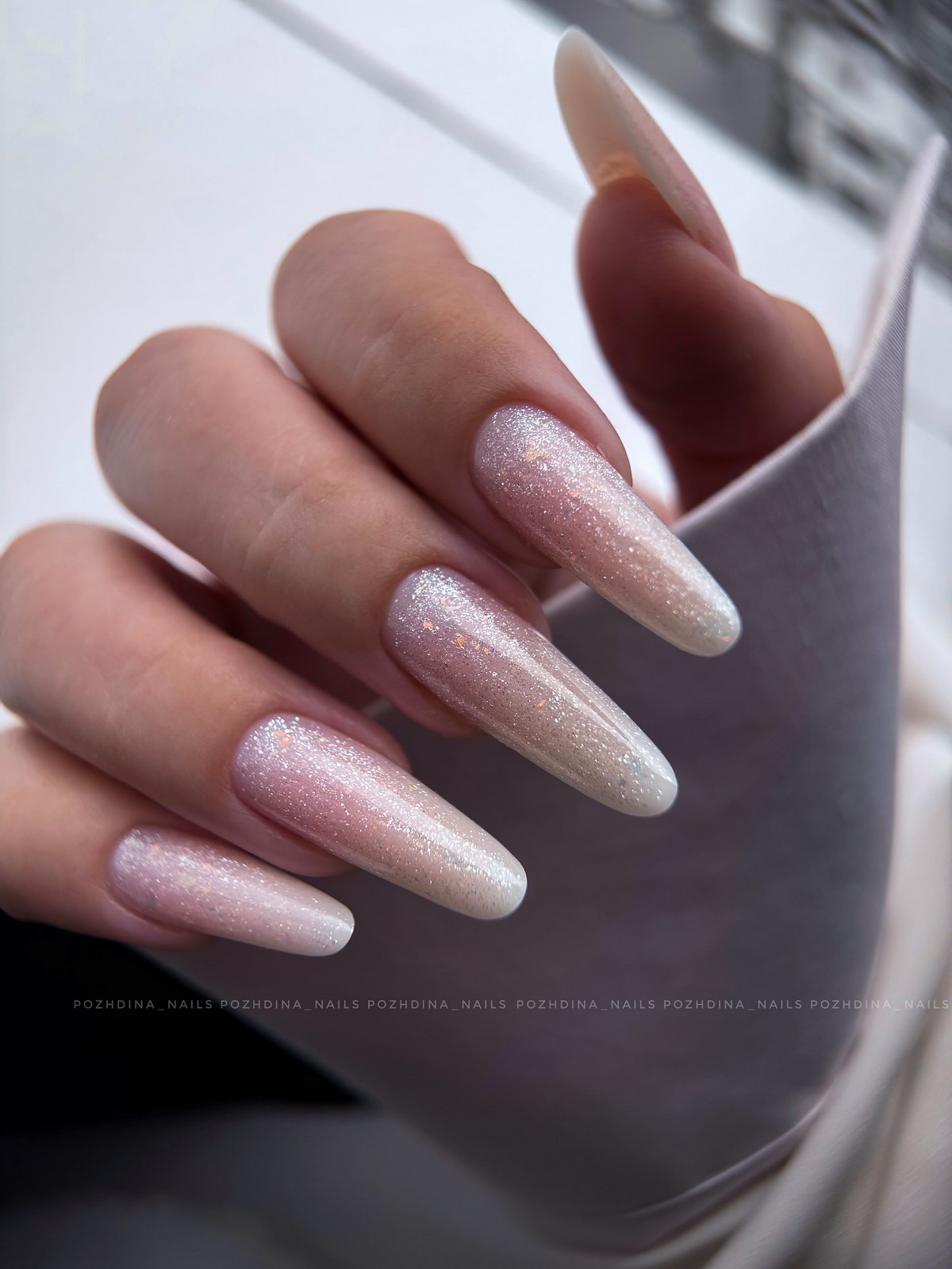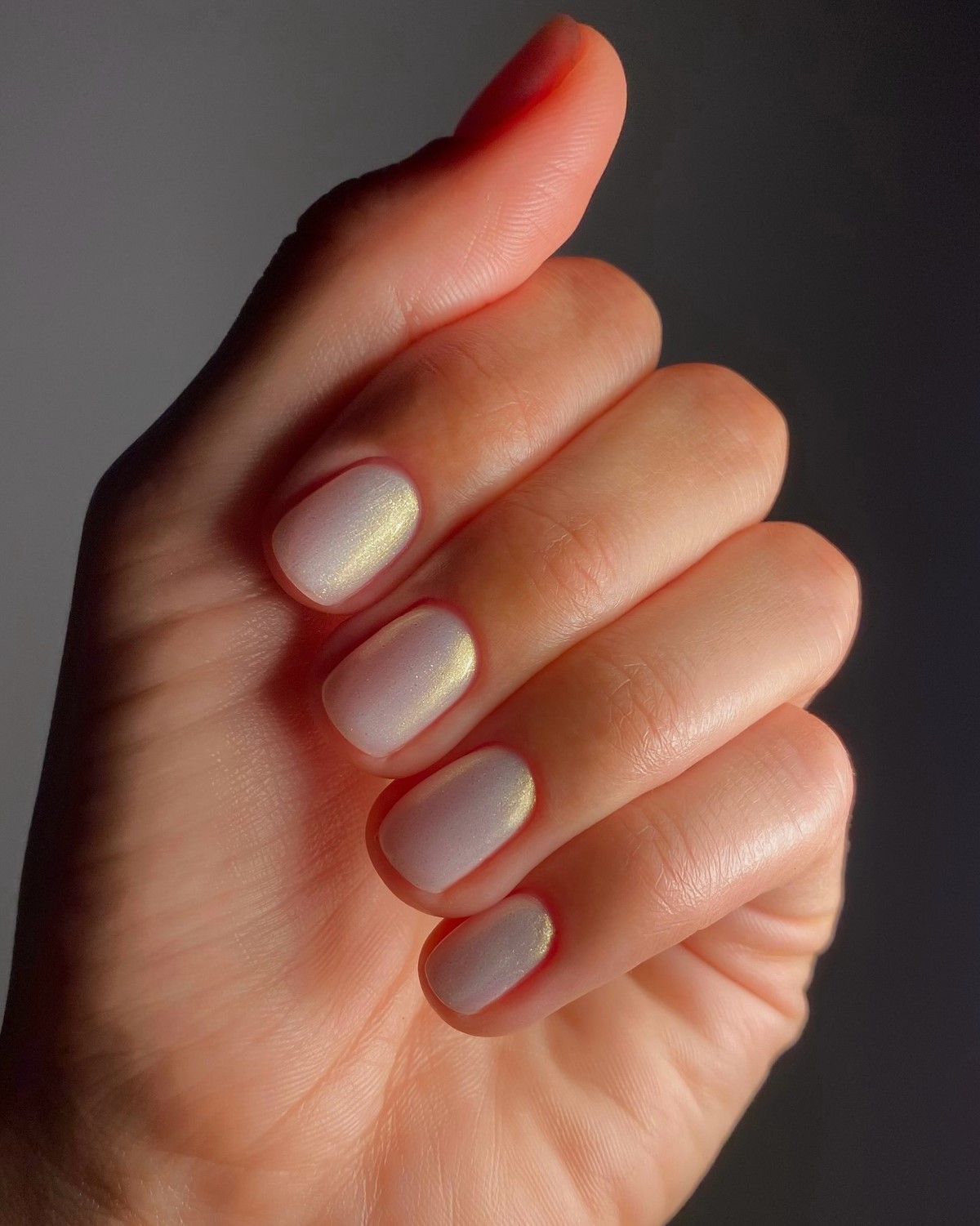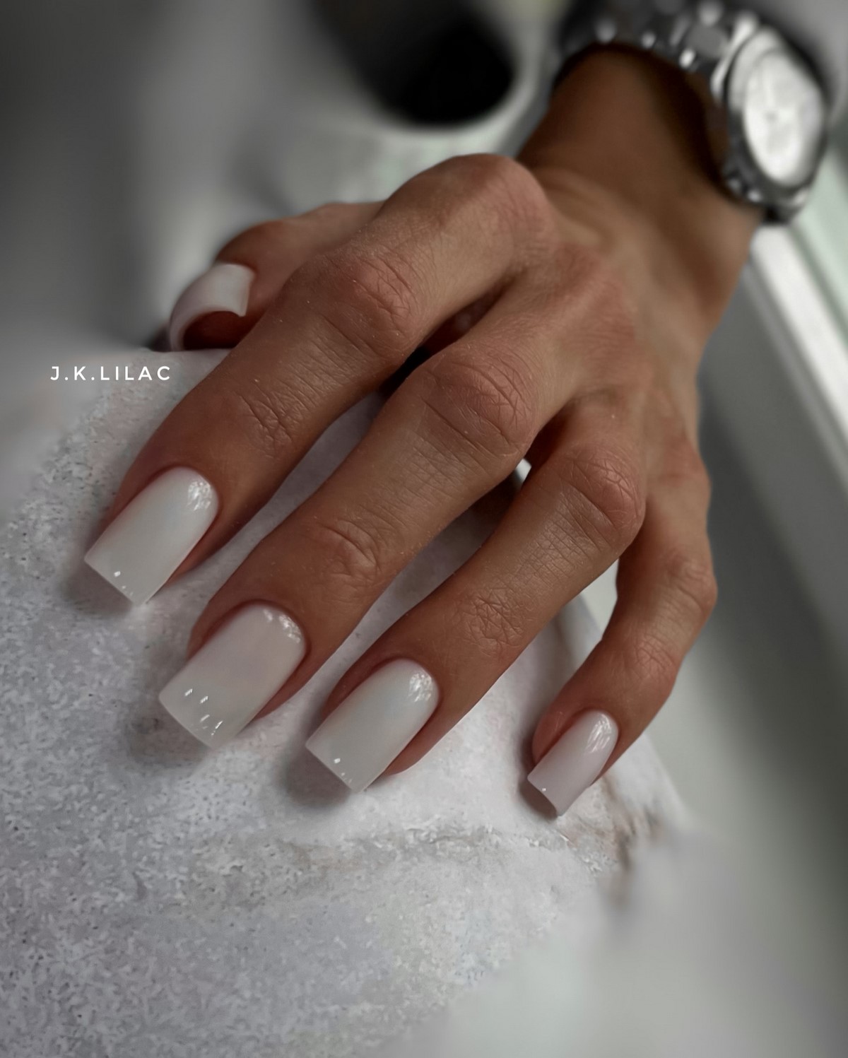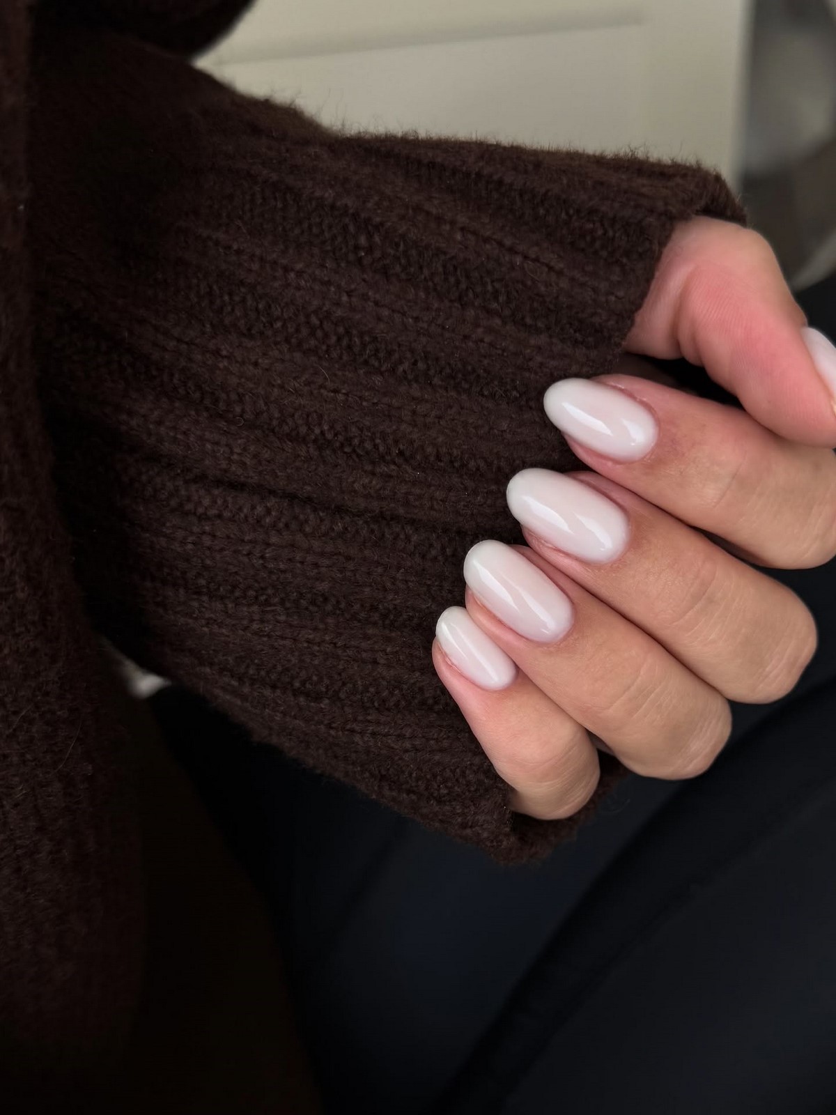 Молочный цвет — универсальный фаворит, идеально подходящий для любителей сдержанной эстетики. Он подчеркивает чистоту и ухоженность рук, прекрасно сочетается с дизайном «аура» и микро-френчем. В ноябре 2025 года молочный оттенок — база для нейл-арта с золотыми вкраплениями.
