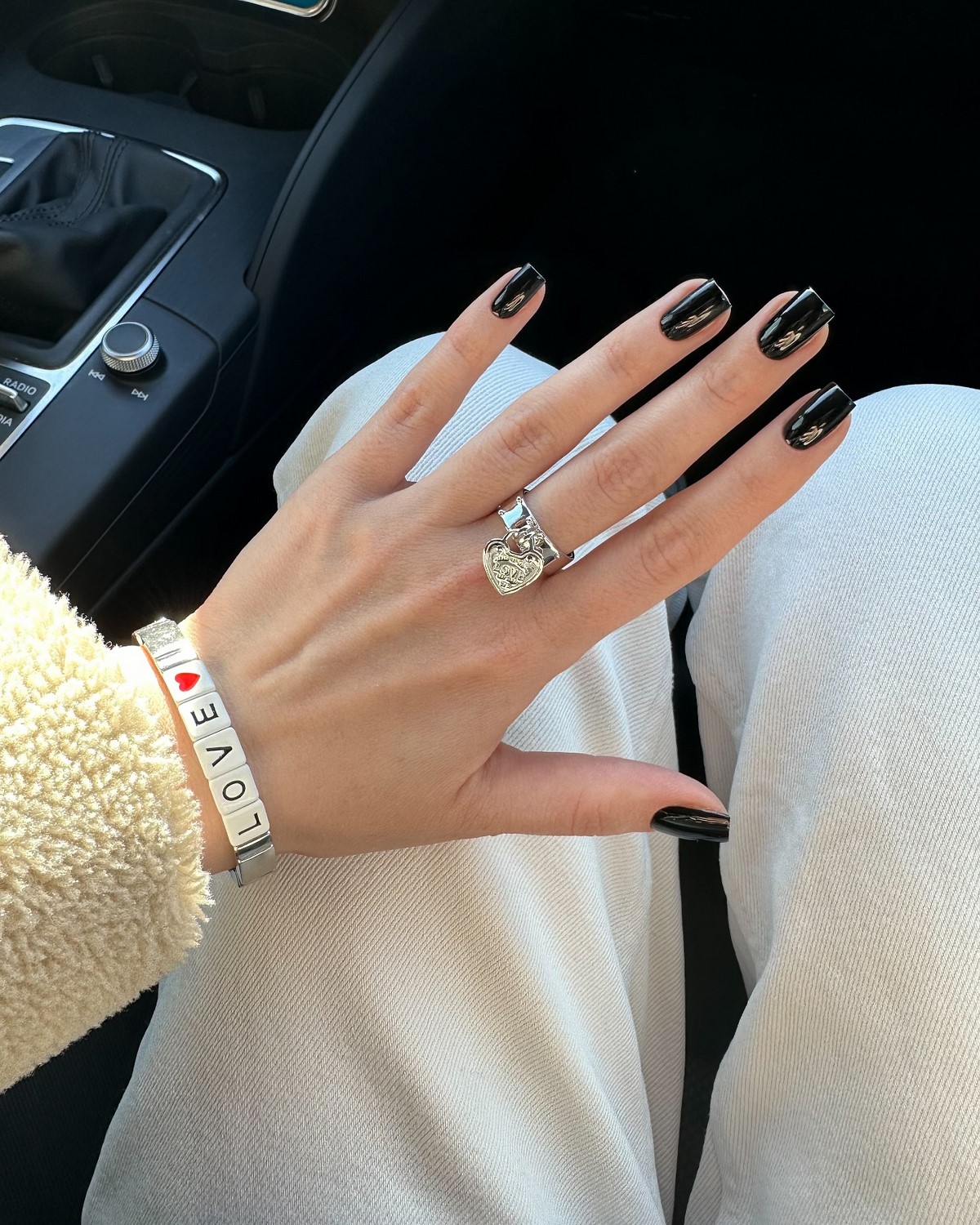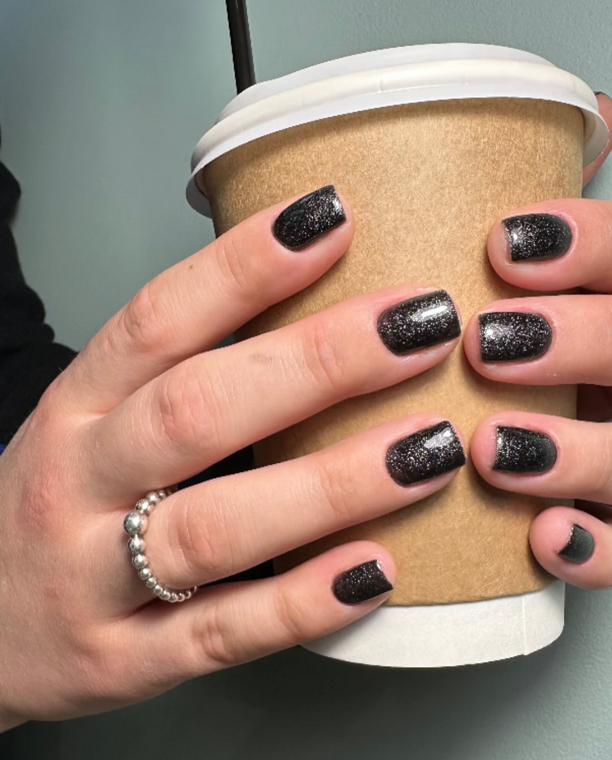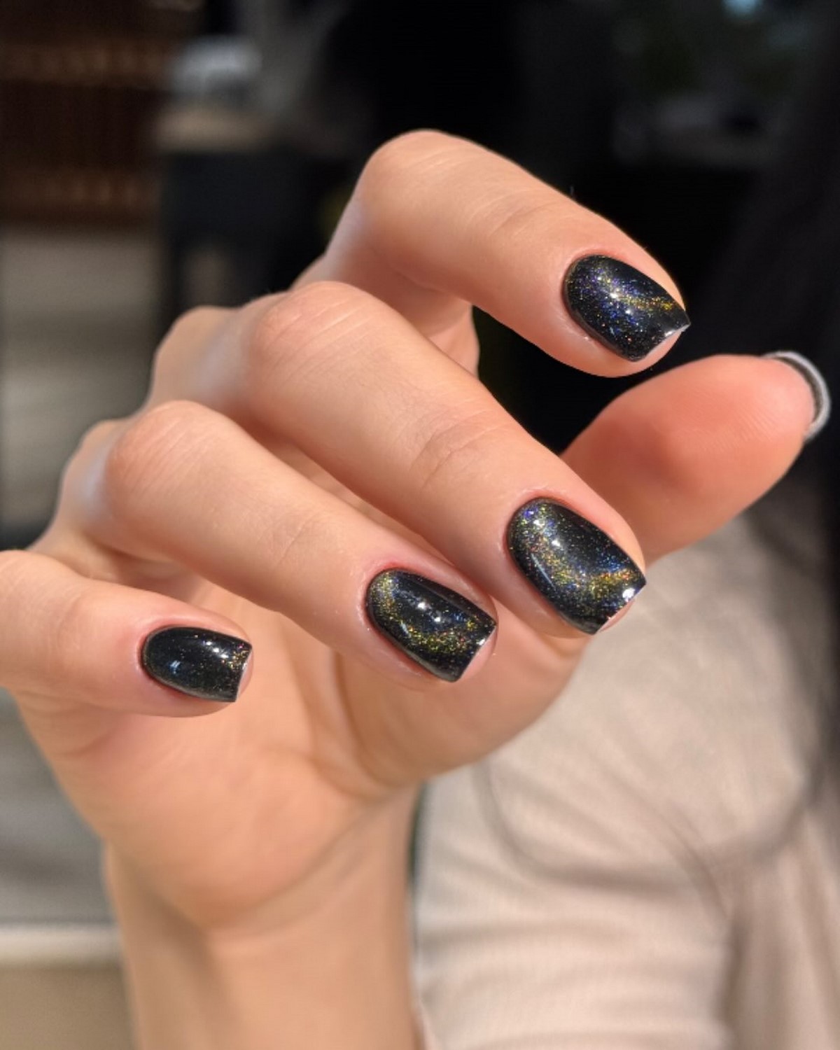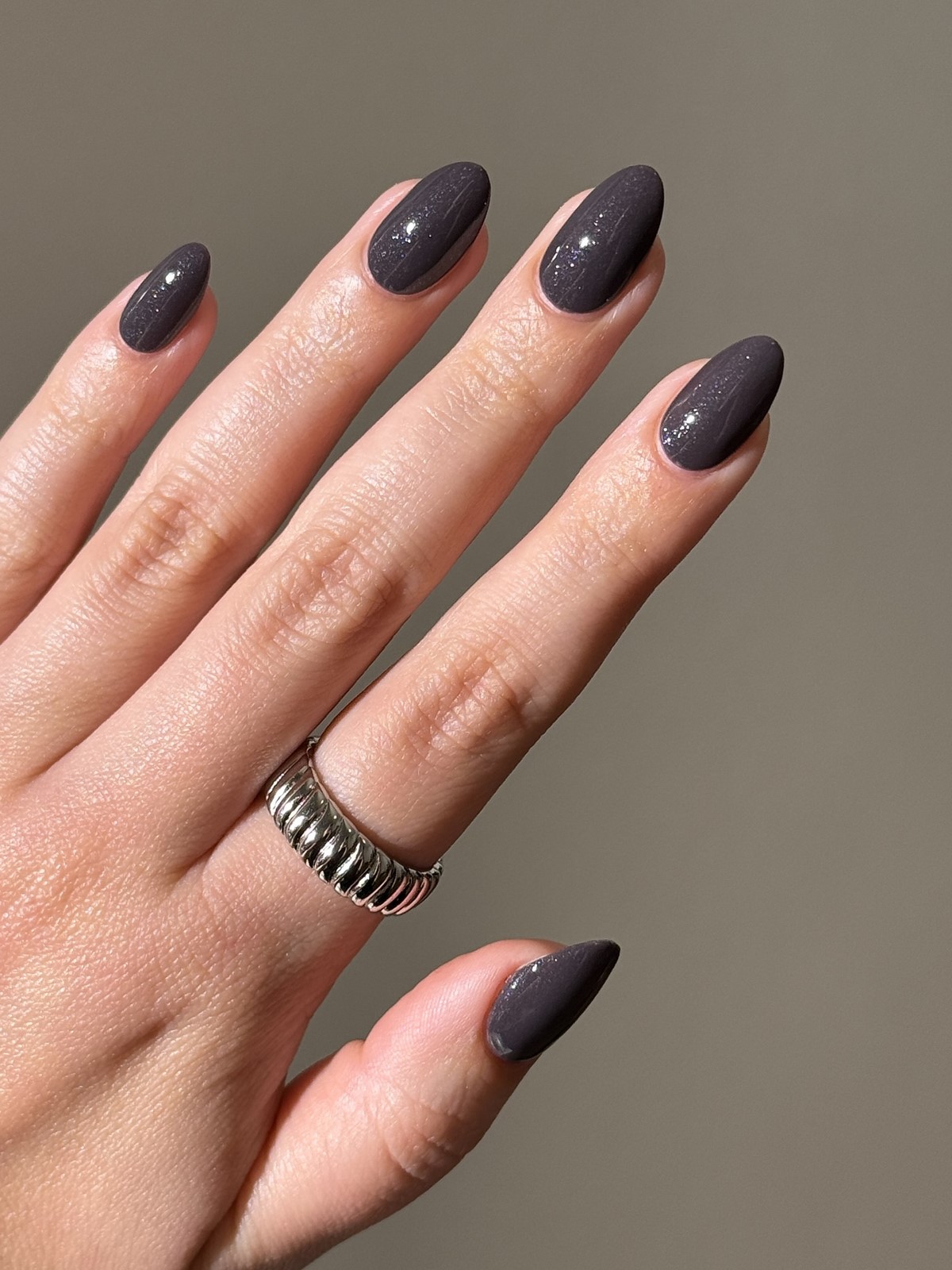Графитовый оттенок — стильный выбор для тех, кто любит современную эстетику. Он выглядит дорого, подходит к любому тону кожи и гармонично смотрится как в офисных, так и в вечерних образах. Особенно актуален матовый графит в сочетании с хромированными акцентами.