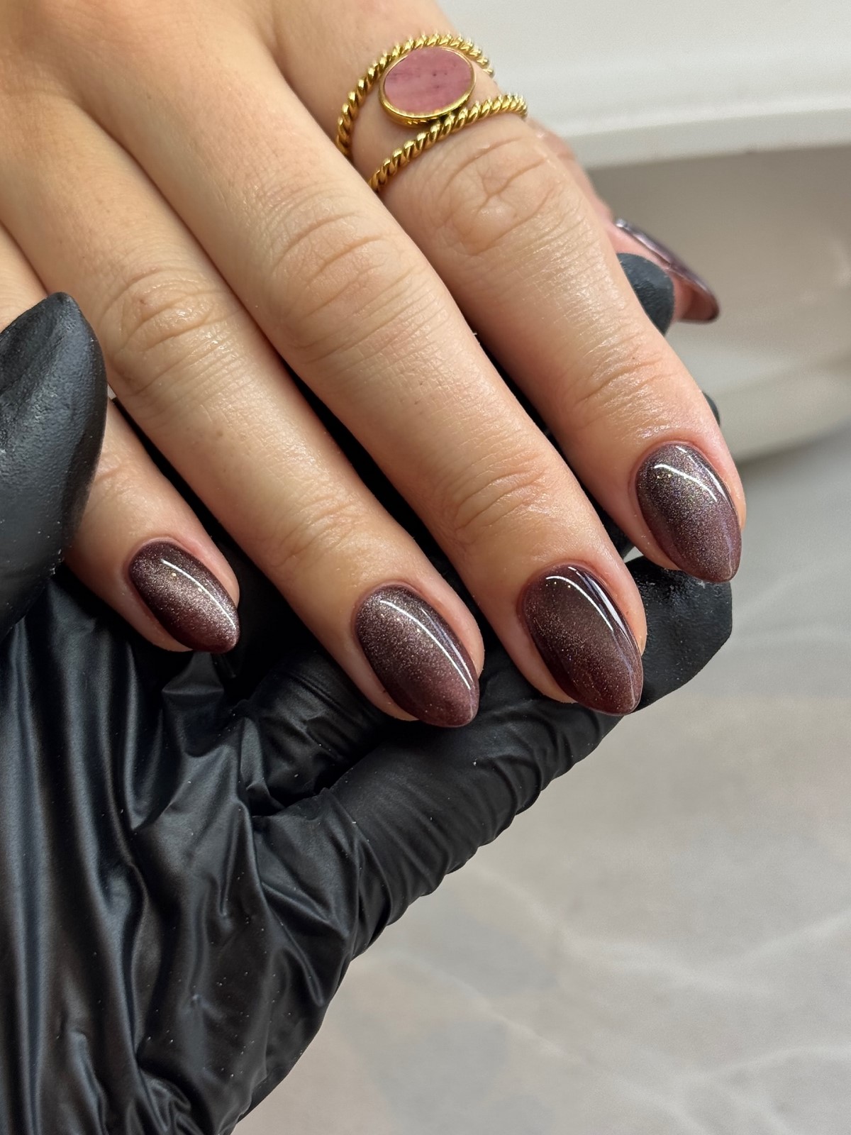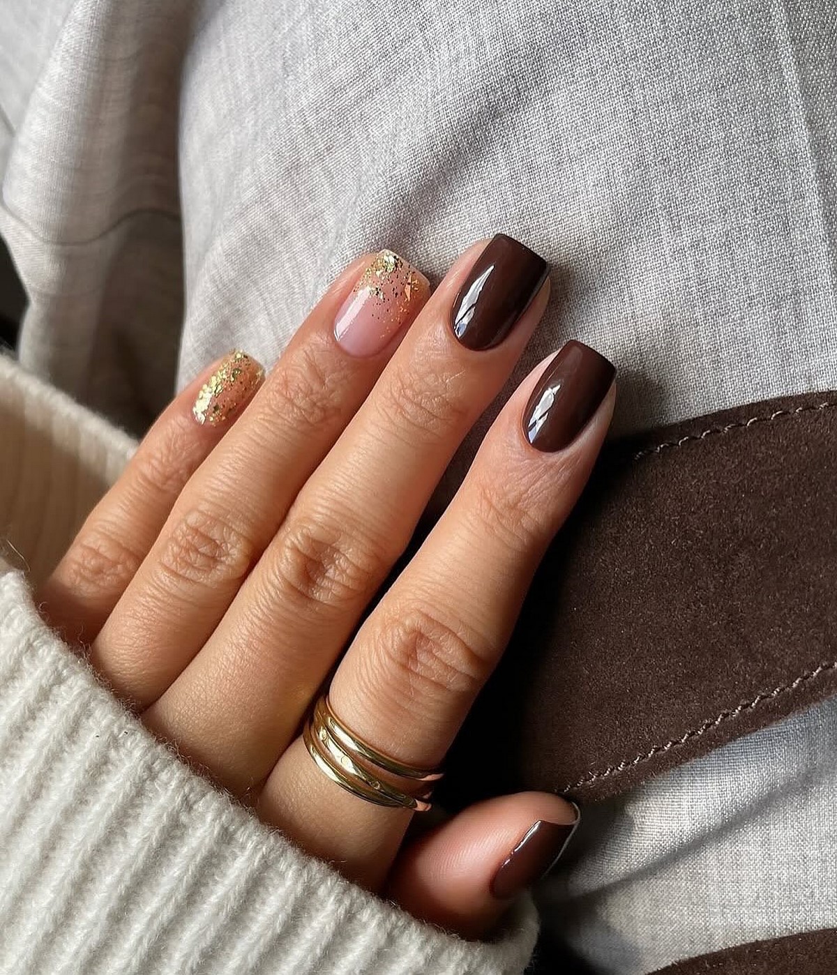 Классический осенний оттенок, напоминающий о теплых напитках и уютных вечерах. Коричневый маникюр особенно красиво смотрится с глянцевым финишем или в дуэте с золотыми вкраплениями. В тренде — глубокие кофейные и карамельные подтоны.