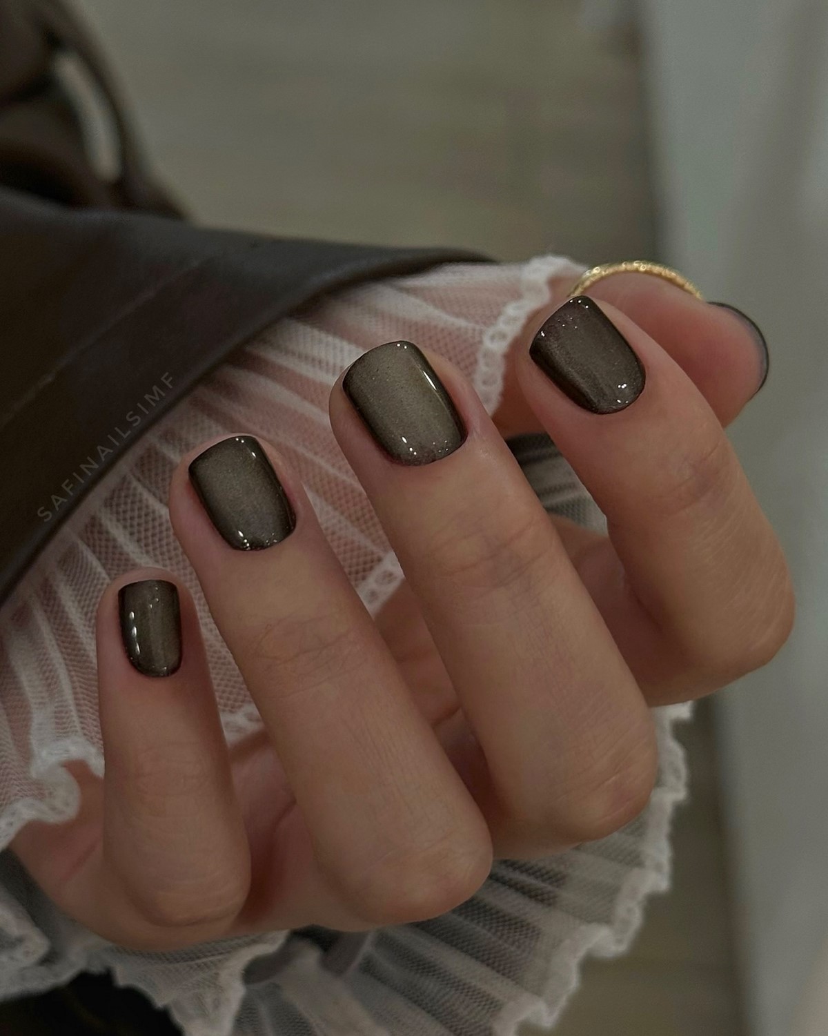 Актуально: бархатный эффект лучше всего раскрывается на коротких и средних квадратных ногтях — форма делает покрытие визуально более дорогим.