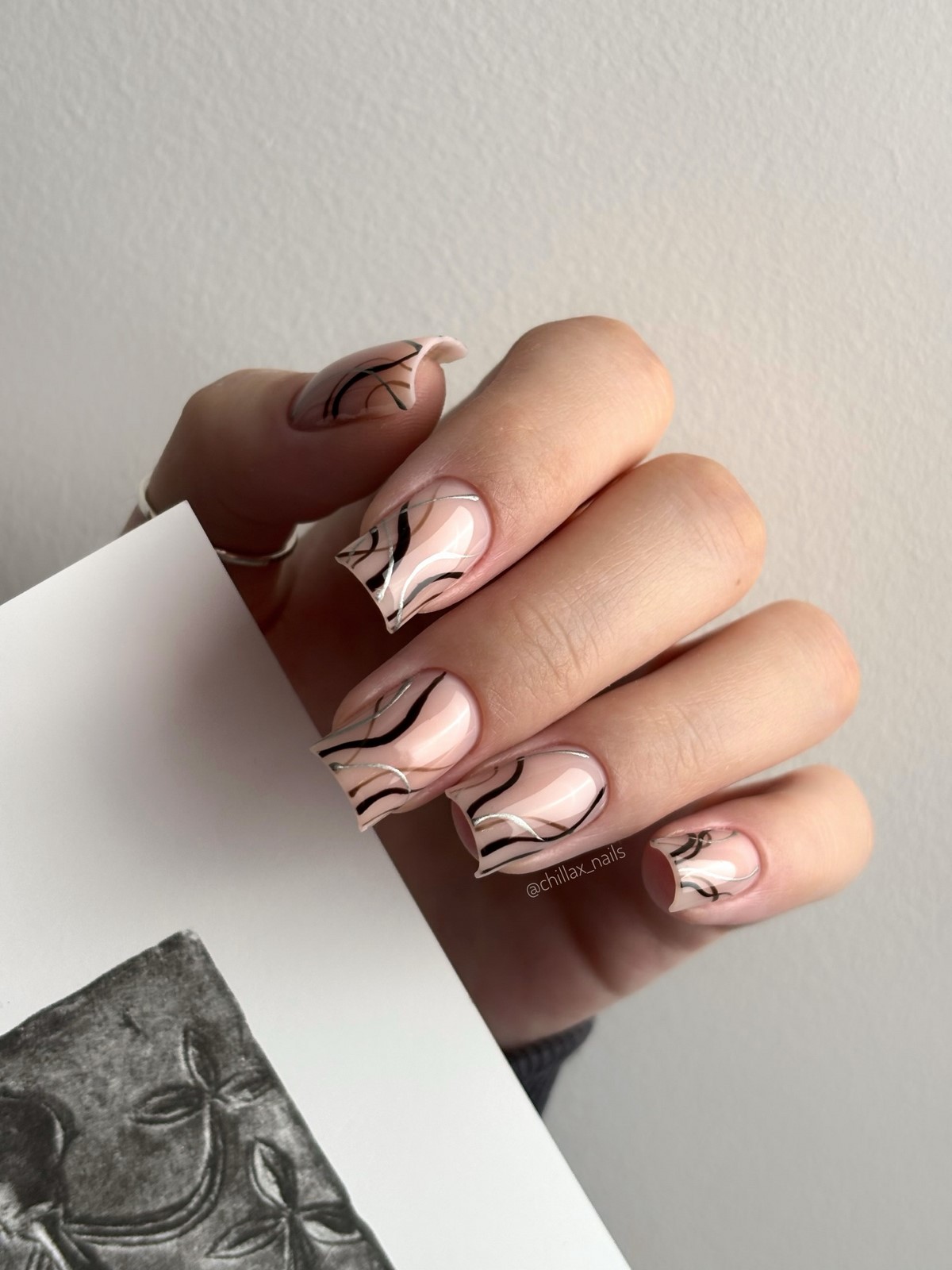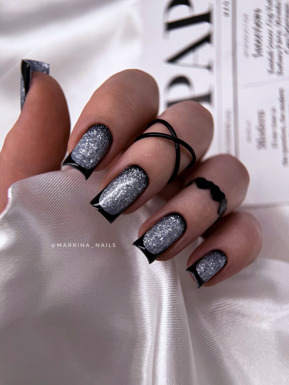 Черную вуаль часто дополняют тонкими линиями, минималистичными узорами или матовым финишем. Такой маникюр идеально сочетается с зимними образами в темной палитре.