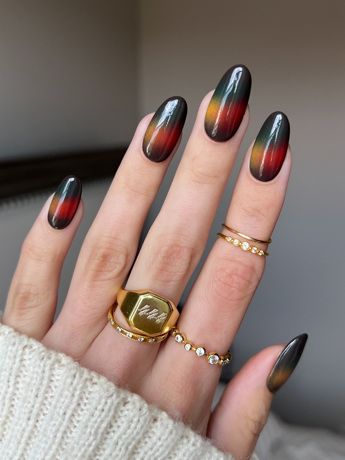 Аура маникюр в зеленых оттенках становится одним из самых художественных решений сезона. Плавные переходы цвета создают эффект свечения изнутри и делают каждый дизайн уникальным. В зимнем варианте используются приглушенные и холодные оттенки, которые выглядят мягко и гармонично.